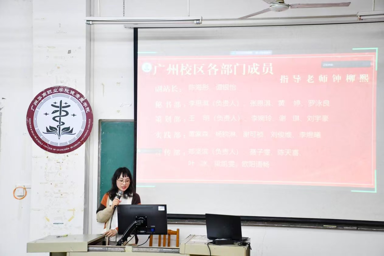 会议第四项议程:由医心驿站指导老师钟柳熙老师宣布第一届学生负责人及工作人员名单(双校区)。