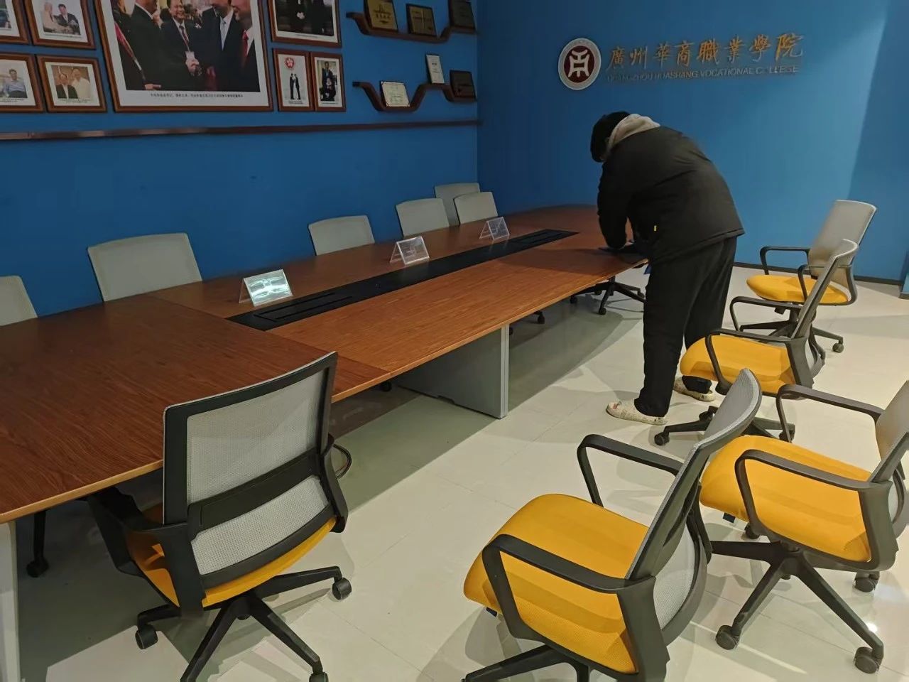 学生志愿者们分工明确,有条不紊地对物资室和书院办公室进行全方位清理。