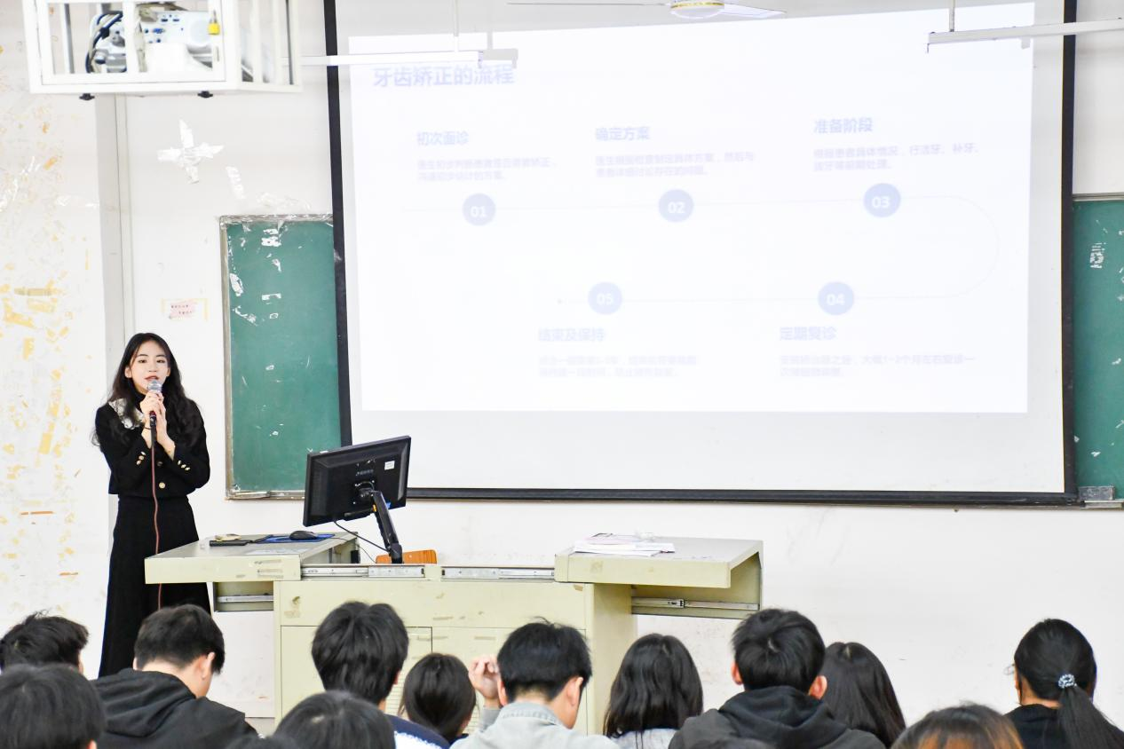 3 月 19 日,前海人寿广州总医院的刘聪贺、张慧玲医生走进校园,在博 C201 教室举办了 “正畸破茧,笑荡青春” 讲座。刘医生详细阐述了科学刷牙的重要性,演示巴氏刷牙法,分享护理技巧。张医生介绍正畸定义及适应症,指出正畸无年龄限制,需基础口腔健康,通过案例展示正畸效果。同时还提供义诊服务,设置互动环节,赠送精美礼品。健康探索乐趣无限!
