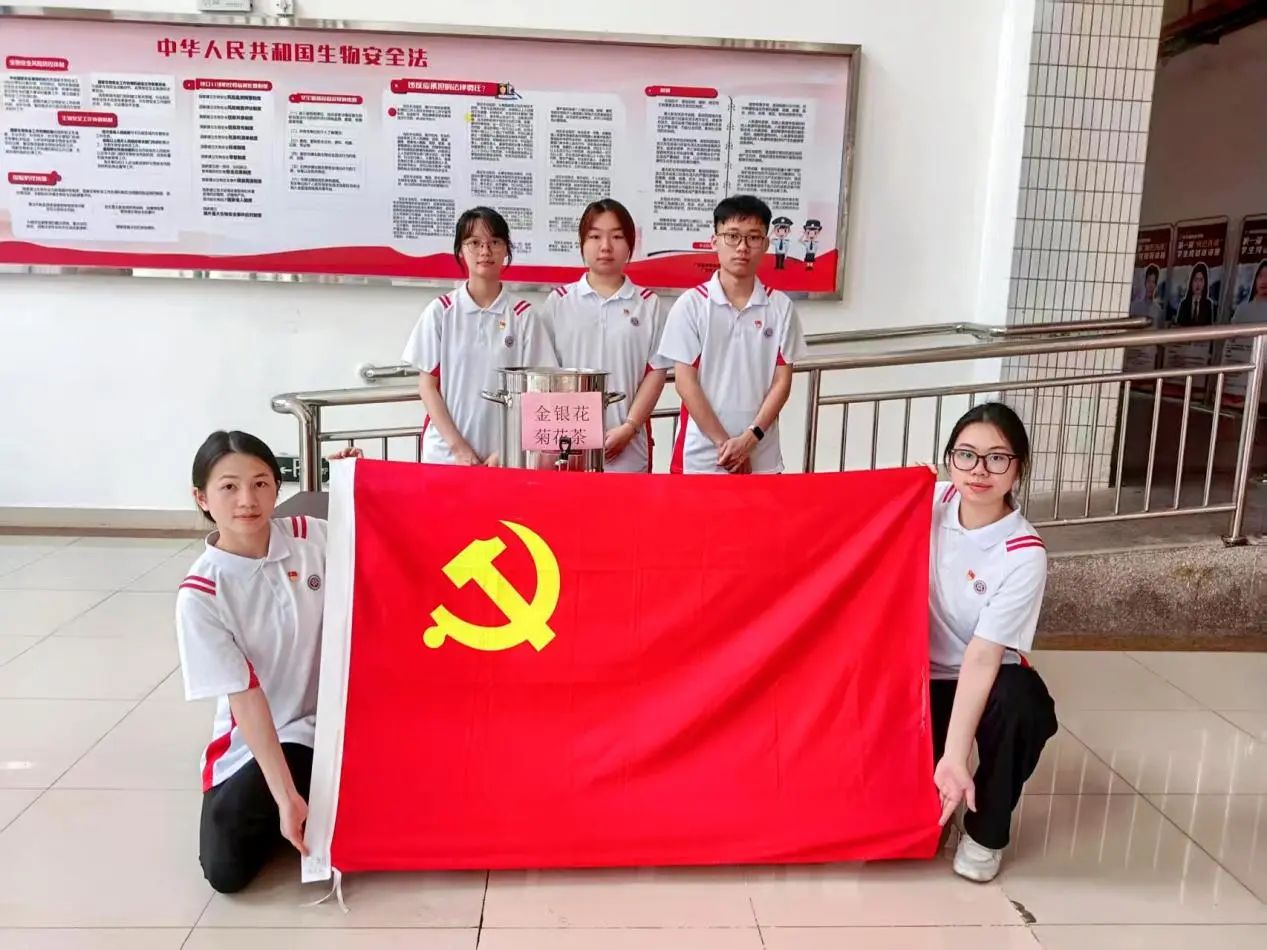 时值四月,天气日渐炎热,除了传统的中医疗法,我们还设置了党员先锋岗,准备了清热解毒的养生花茶,为师生们提供了健康又美味的饮品选择。