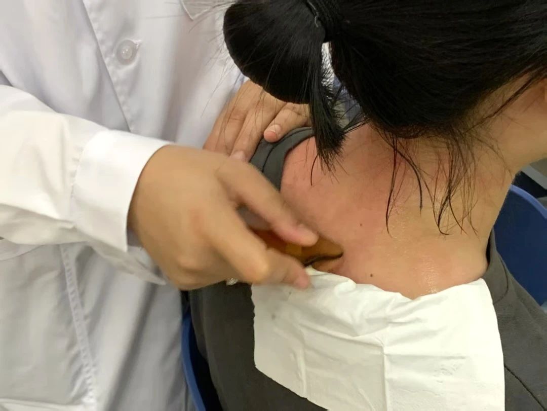 刮痧排毒,焕活身心。刮痧板轻触肌肤,通过特定的手法刺激经络,帮助排出体内湿气与毒素。针对上火、疲劳等症状,志愿者们耐心调整力度,让红色的痧痕见证身体的“减负”过程,体验者纷纷感叹:“做完感觉身体轻松了不少!”
