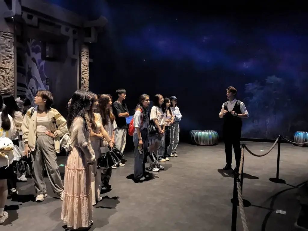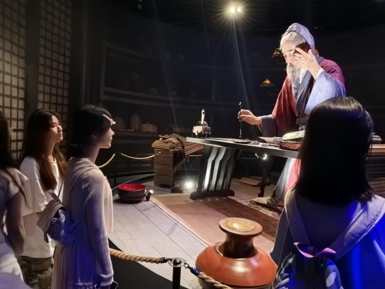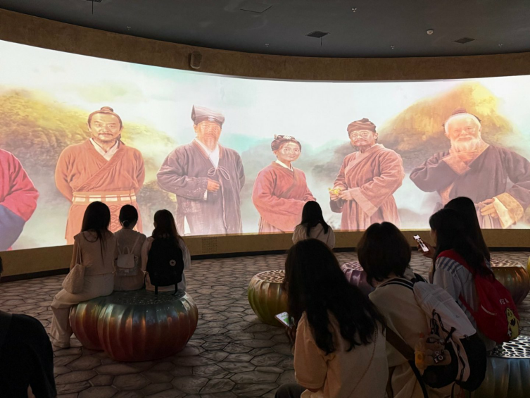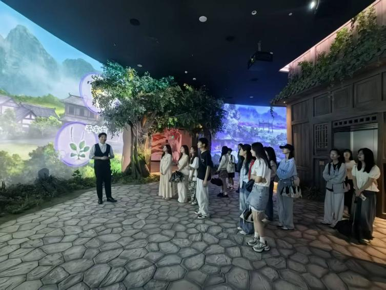 抵达横琴中医药文化体验馆,开启研学探索第一站!在这里,同学们穿越千年中医药文化长廊,触摸历史的脉搏。馆内丰富的展品、生动的互动体验,将中医药的起源、发展与传承一一展现。从古老的中医典籍到现代中医药科技成果,传统与现代的完美融合令人惊叹。同时,同学们通过AR技术“采摘”虚拟药材,体验智能中医诊断系统,感受科技为传统医学带来的革新。