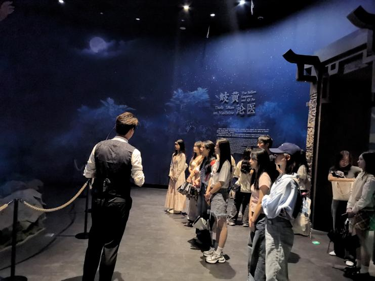 研学之旅的最后一站,同学们来到中西药局旧址,这座见证澳门中医药百年发展的历史建筑。 在这里,传统中医药智慧与西方医学理念交相辉映。同学们透过展柜中的古老药具、发黄的手稿,触摸到中医药在澳门的传承脉络。