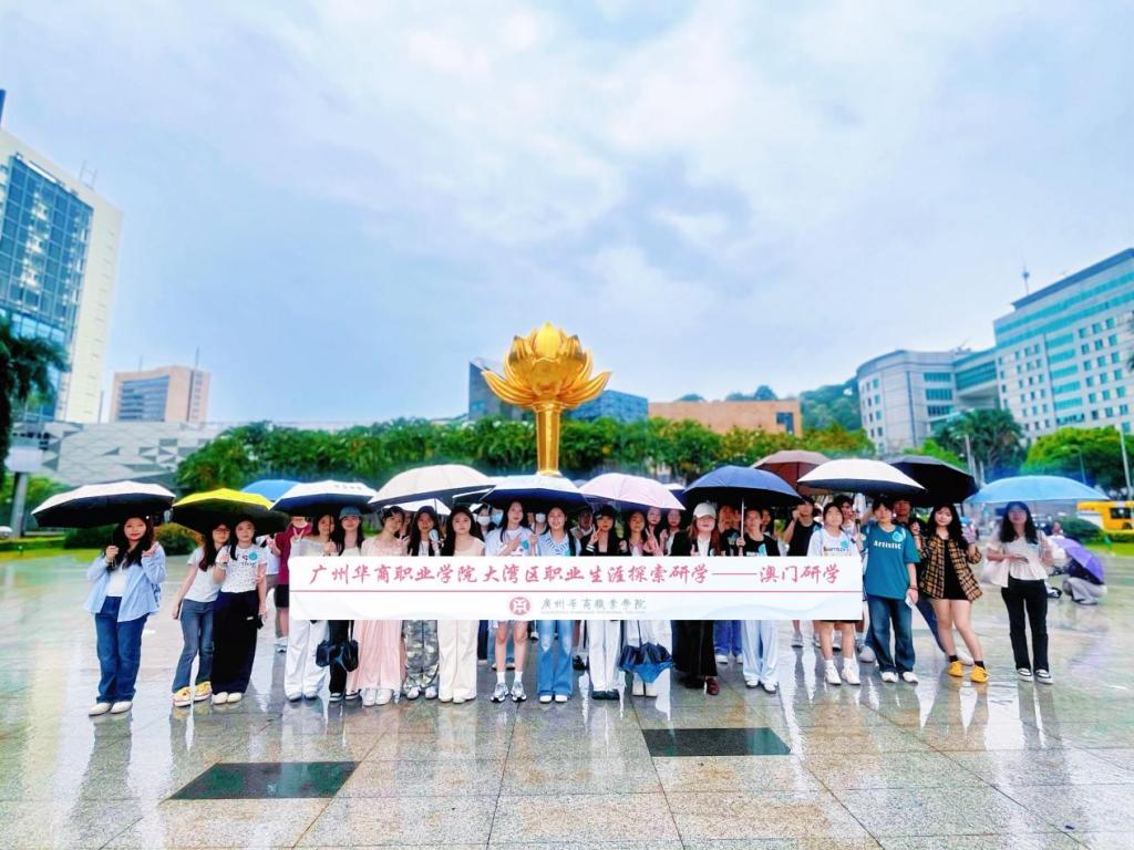 穿越横琴口岸,同学们来到金莲花广场。这座为纪念澳门回归铸就的金色雕塑,在阳光下熠熠生辉。作为澳门地标,她既承载着厚重的历史记忆,又展现着时代发展的蓬勃生机。