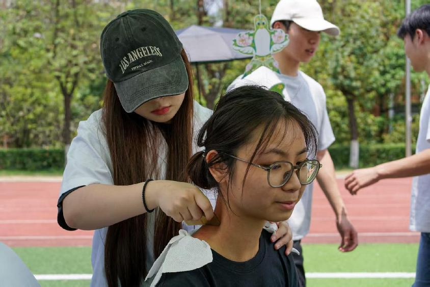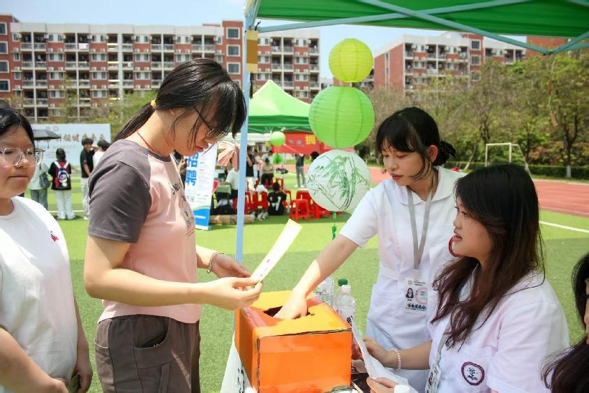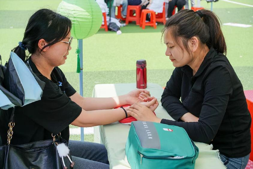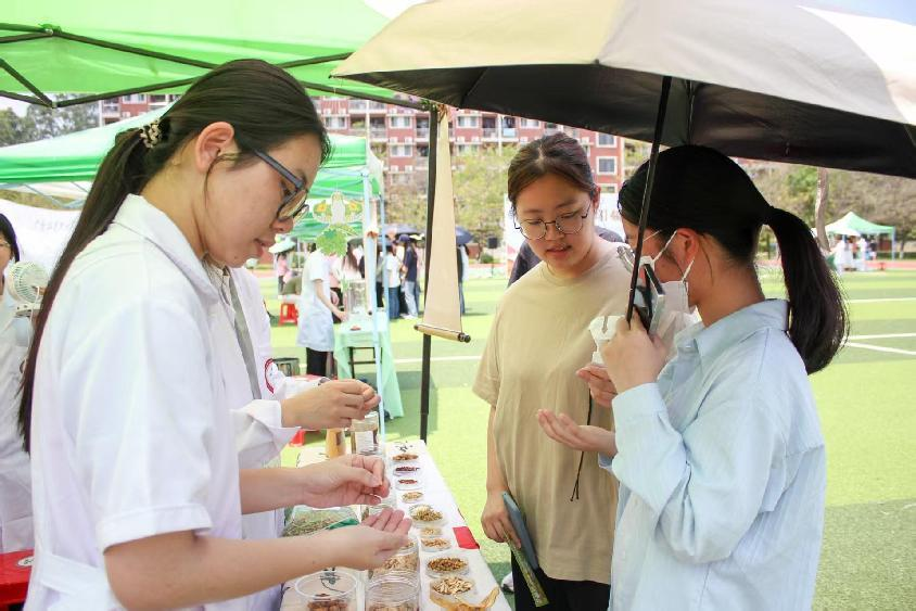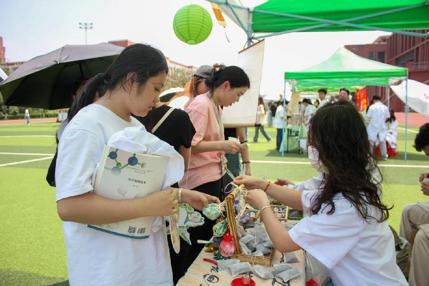 本次文化节趣味游园活动现场,设计了中医药膳品鉴、中医药养生、中医药康养和中药耳饰DIY等一系列创意实践活动。这些活动将传统典籍中的知识从泛黄的书页带入现实生活,让千年岐黄智慧在青年学子的实践中焕发出新的时代生机。