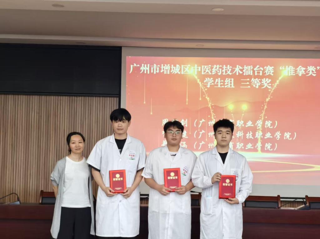 近日,在增城区举办的中医药擂台赛“推拿赛”中,我院康复治疗技术专业的学生凭借扎实的专业技能和出色的现场表现,荣获大赛三等奖,同时我校荣获优秀组织奖。