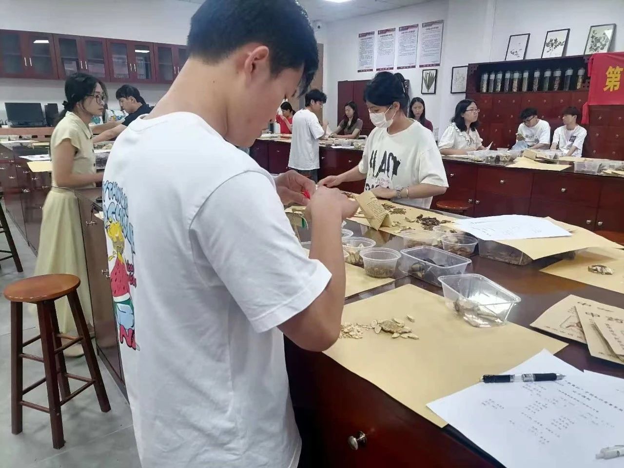 为了弘扬中医药传统文化,提升学生的专业技能,加深对中药学知识的理解与应用,同时为参加广东省职业院校技能竞赛——中药传统技能赛项选拔优秀选手,健康医学院和果行研学共同举办第一届“华商杯”中药知识技能大赛。本次大赛分为初赛和决赛两个阶段。初赛于5月10日在线上进行理论答题,共有117名来自广州华商职业学院、广州华商学院、广东华商技工学校的学生参与,最终24名学生成功晋级决赛。决赛于5月17日在院士楼落下帷幕。让我们一起来回顾一下比赛的精彩瞬间吧!