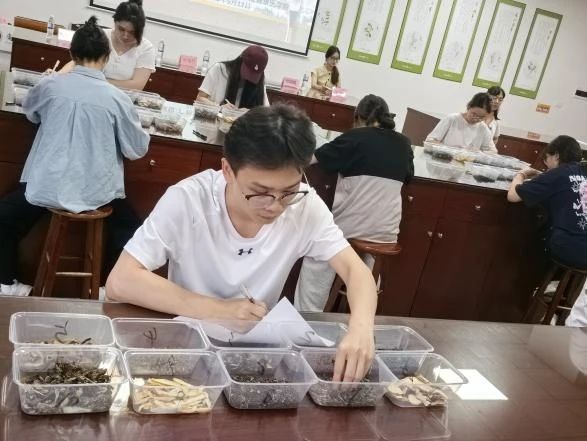 比赛分为中药鉴定、真伪鉴别、处方审核和处方调剂四个模块,全面考察选手对中药知识的掌握与应用能力。选手们神情专注,在紧张而有序的节奏中完成各项任务。中药鉴定环节中,选手们凭借敏锐的观察力和扎实的理论基础,迅速辨别出各类药材的特征;真伪鉴别环节则考验了他们的细致与耐心,面对真假难辨的药材,选手们从容应对,精准指出差异。而在处方审核与调剂环节,选手们不仅需要快速审核处方的合理性,还要精准无误地完成药材的称量与调配,展现出扎实的实践技能。