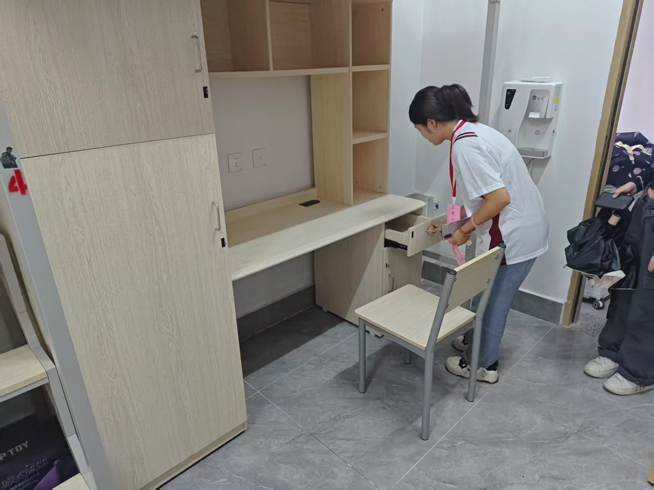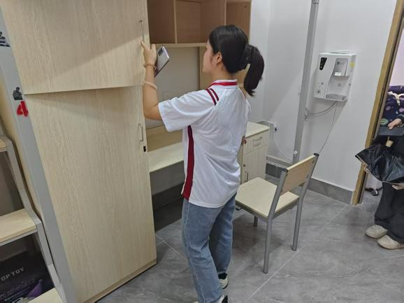 活动期间,志愿者们早早来到11C学生宿舍,迅速投入到忙碌的工作中。他们分工明确,有的在宿舍楼下协助维持秩序,引导离校学生有序办理退宿手续;有的穿梭在各个宿舍之间,耐心地协助宿管人员检查宿舍设施设备,确保房间水电关闭、门窗完好,认真做好每一项退宿检查工作。