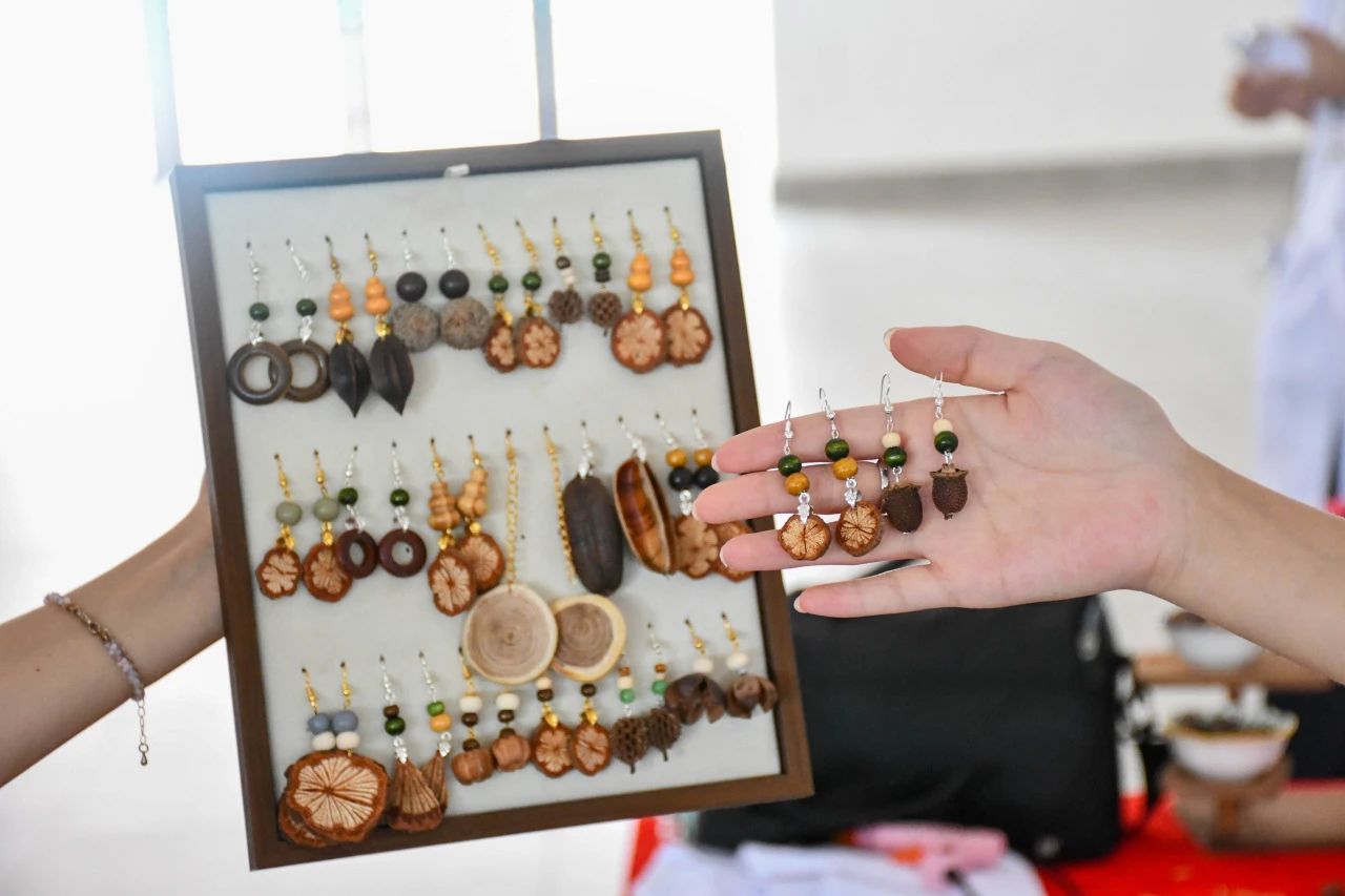在中药耳环手串工坊中,各类药材,在专业指导下将其巧妙融入耳环和手串制作,既了解中药特性,又能亲手打造独一无二、散发药香的时尚饰品,感受传统与时尚的融合。