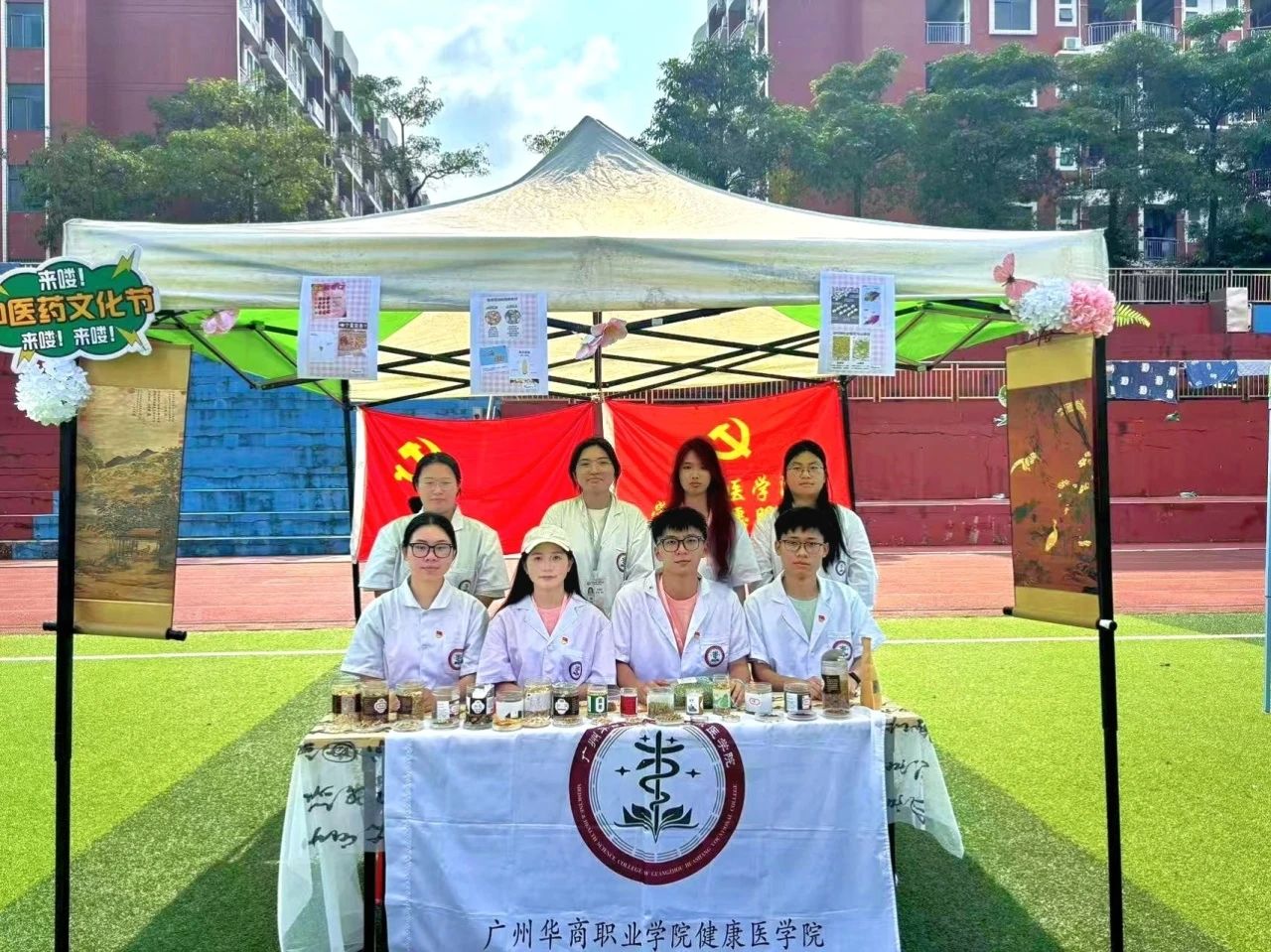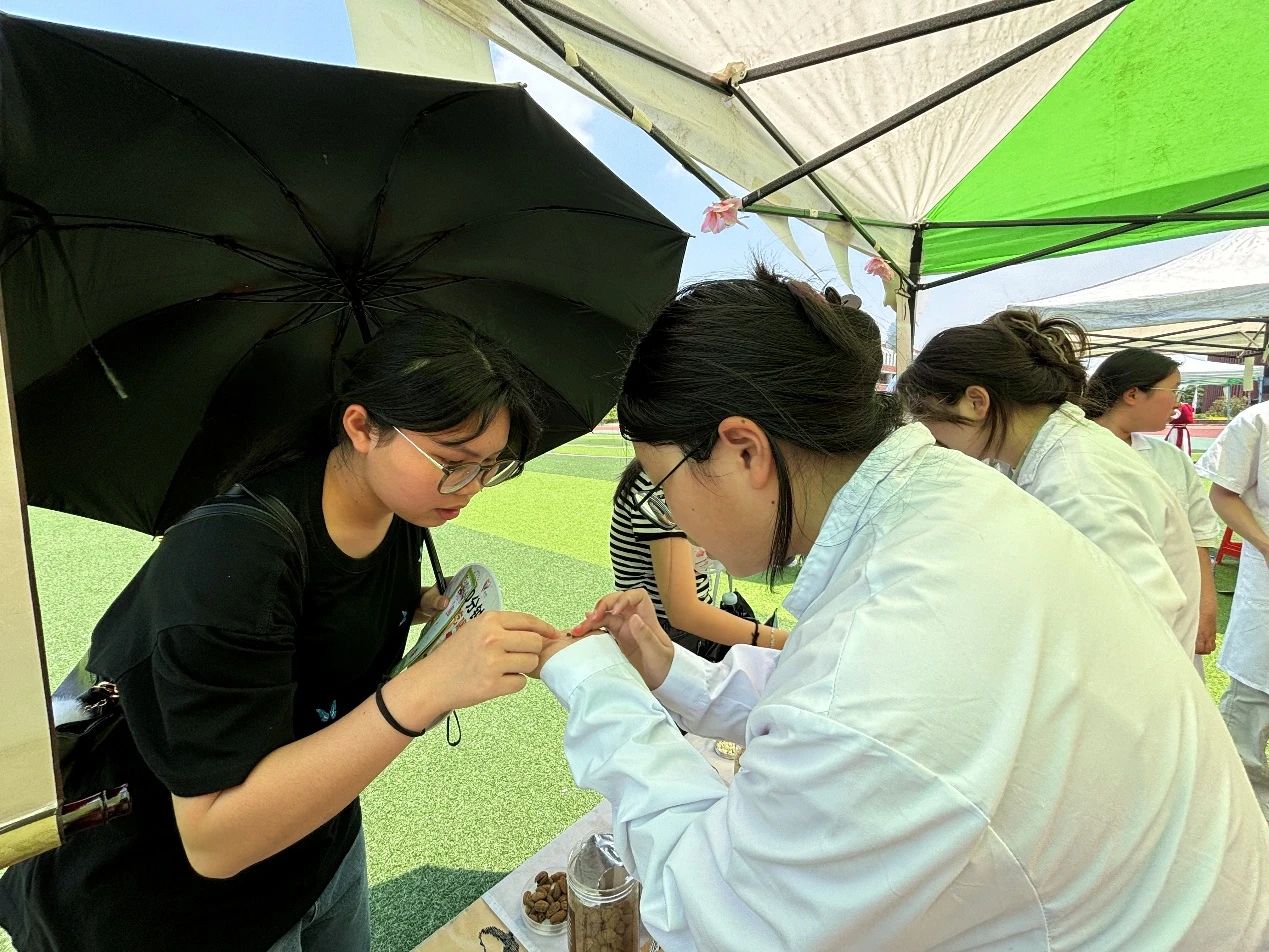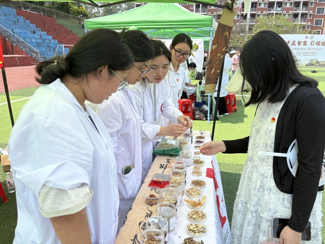云卷云舒,草木葳蕤。为传承中医药文化精髓,弘扬中医智慧,医心健康服务队队员们和健康医学院学生第一、第二党支部的学生党员于5月13日下午,在东操协助开展了中医药文化节趣味游园活动。将中医药知识融入趣味体验中,让师生在互动中感受千年药香的独特魅力,进一步推动中医药文化在校园内生根发芽。
