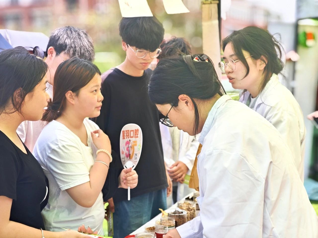 现场的志愿者们,通过中药标本的生动讲解,向师生普及“四气五味”“药食同源”等中医药核心理念,手把手教授“观形色、嗅气味、辨质地”的药材鉴别技巧,许多参与者意犹未尽,围绕展区讨论起“如何在家种植药用香草”“药食同源食材搭配技巧”等话题。