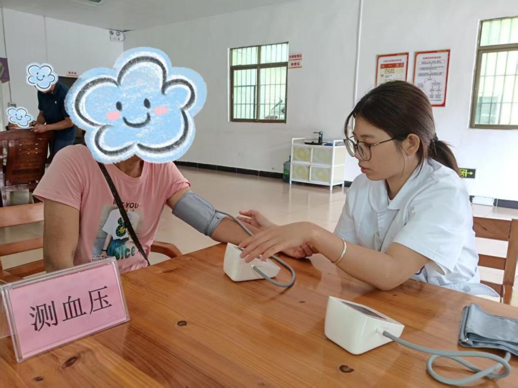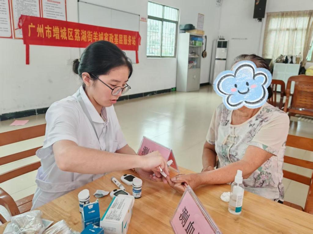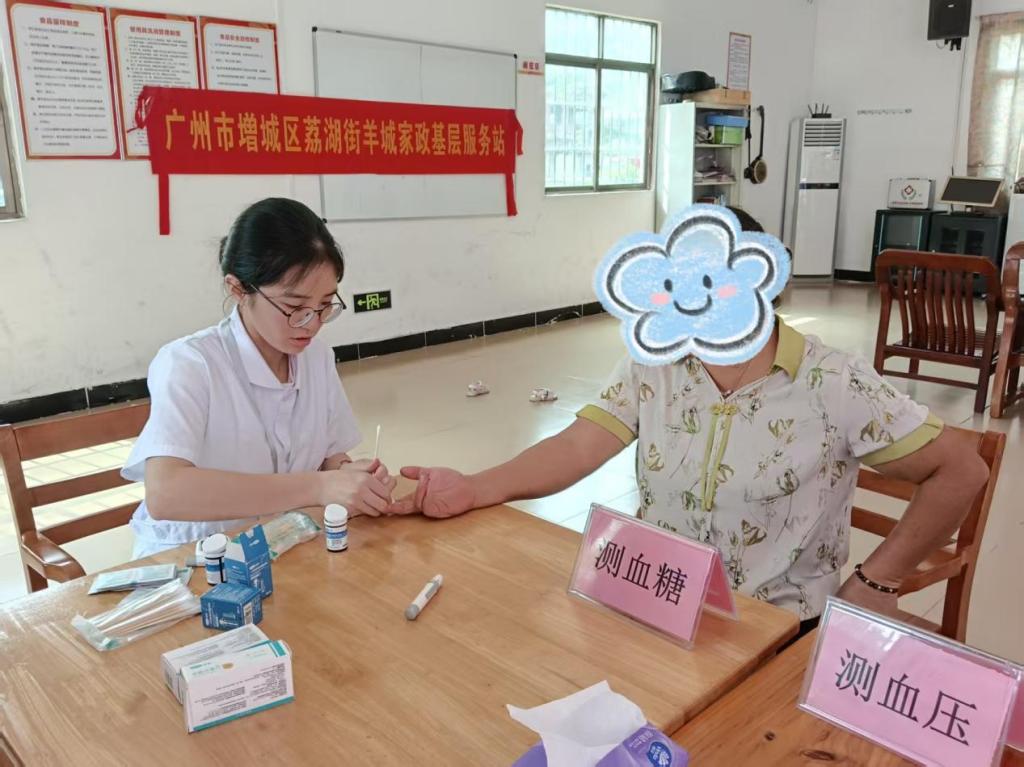 活动现场,血糖、血压检测区格外忙碌。队员们有条不紊为居民测量数据,他们一边用仪器测量血糖、血压,一边耐心询问每位村民的身体状况、日常饮食及作息习惯等,并提供科学的健康管理建议。