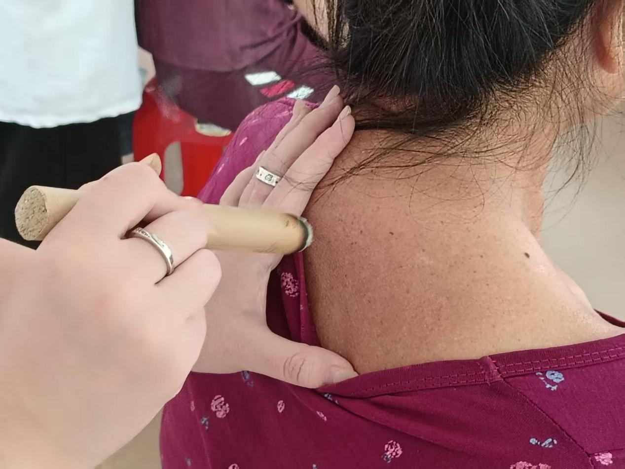 在推拿刮痧区,志愿者用精湛的推拿技艺和熟练的刮痧技巧,为居民缓解肩颈疼痛、肌肉僵硬等问题。他们耐心询问居民的感受,根据不同人的身体状况调整力度和手法,确保每一次推拿和刮痧都能达到最佳效果。体验过的居民们纷纷表示,经过志愿者的按摩刮痧后,身体感觉轻松了许多,对志愿者表示感谢。