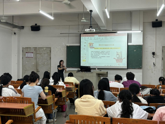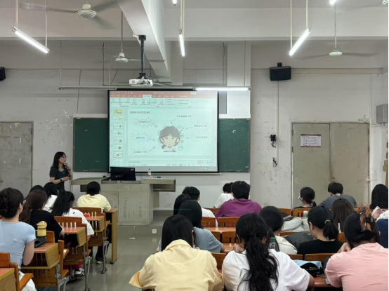 讲座伊始,钟老师以"你最近是否感到心累"的互动提问开场,迅速引发在场同学的共鸣。钟老师以温柔又有力的讲述,让每位参与者都感受到:拒绝内耗不是强行乐观,而是学会与自己的不完美温柔相处。