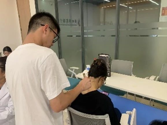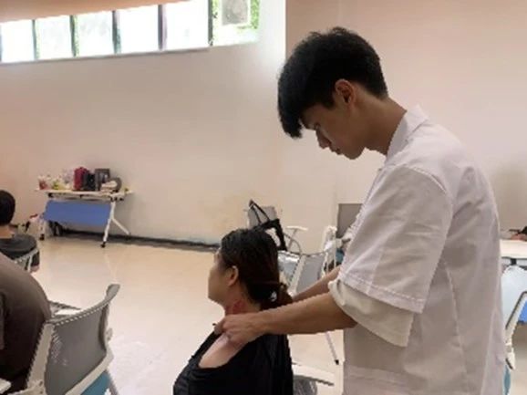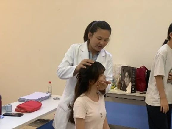 在活动过程中,中医药文化的魅力与温情交融。黄艳丹老师凭借扎实的中医理论功底与丰富的经验和志愿者一起,为师生们提供专业中医诊疗服务。从精准把脉辨证体质,到娴熟施展推拿按摩、艾灸、刮痧、针灸等特色疗法,每一个环节都彰显着传统医学的智慧。