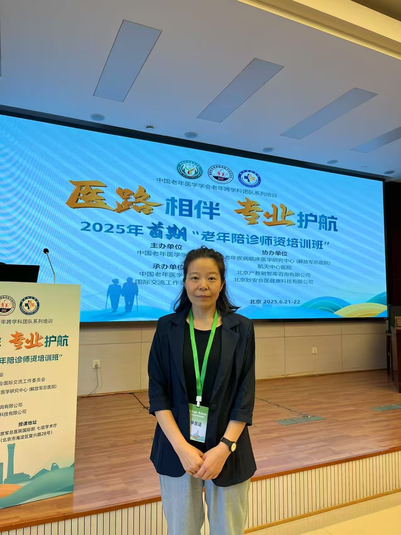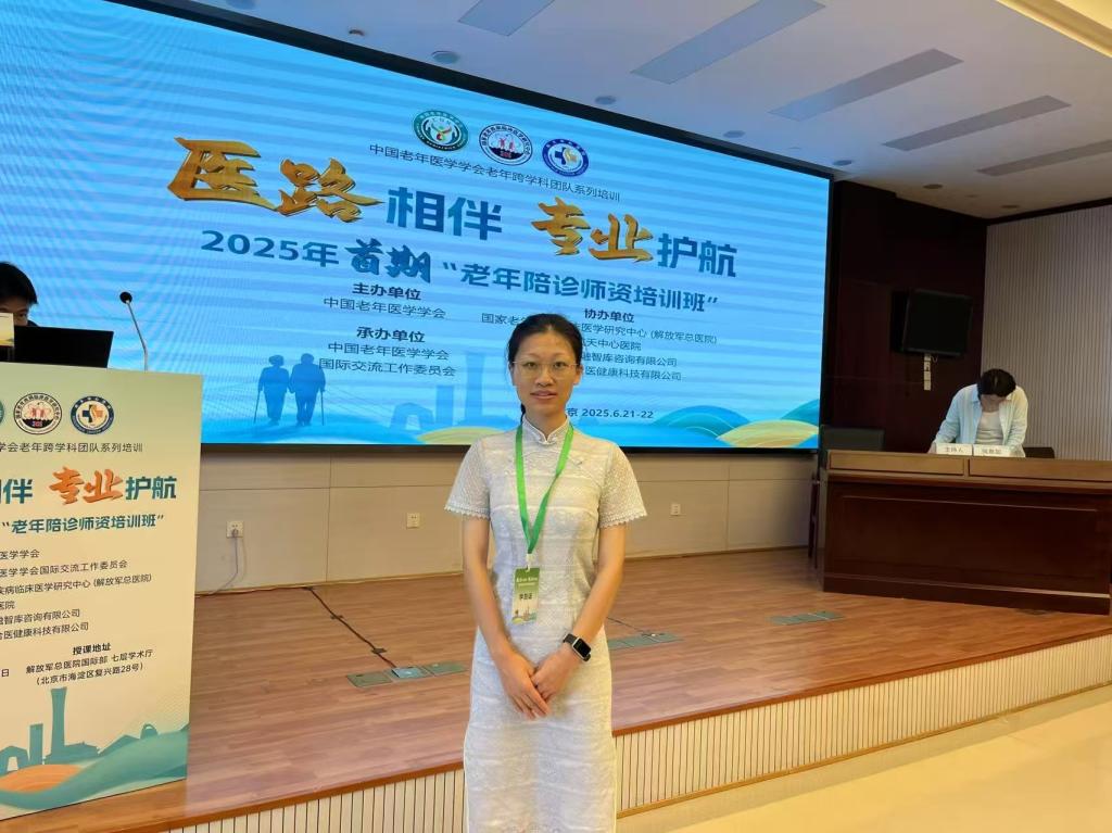 为推进我国老年陪诊服务的专业化与规范化发展,中国老年医学学会于2025年6月21日至22日在北京解放军总医院国际部七楼举办了首期“老年陪诊师资培训班”。我院肖红、贺礼仪两位老师参加了本次培训。
