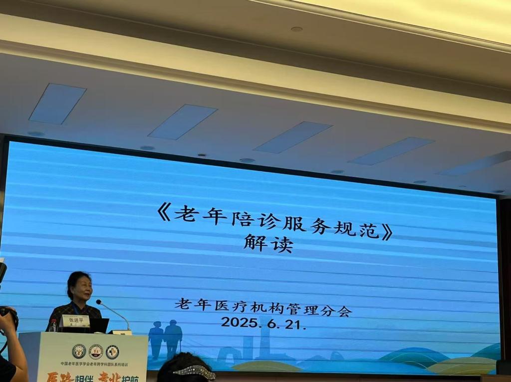 在专家讲座环节,中国老年医学学会陈峥副会长指出,我国正处于人口老龄化快速发展的阶段,老年人群中多病共存现象显著,就医需求巨大。在从医院到社区、居家的连续整合医疗服务中,尤其在医养结合服务的双向转诊环节,缺少具备老年医学基本知识和技能的陪诊服务人员师资队伍。