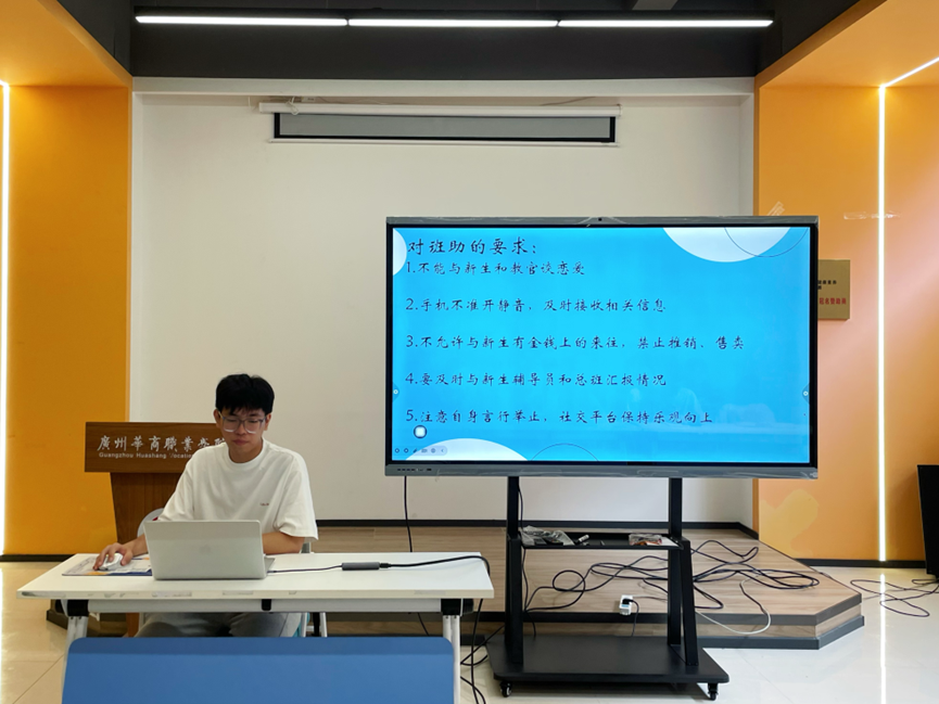 总班助陈奕圳同学结合相关经历,分享“学院简介与新生常见问题解答”,用真实故事传授沟通与应变技巧,帮班助提前预判、从容应对新生入校挑战。