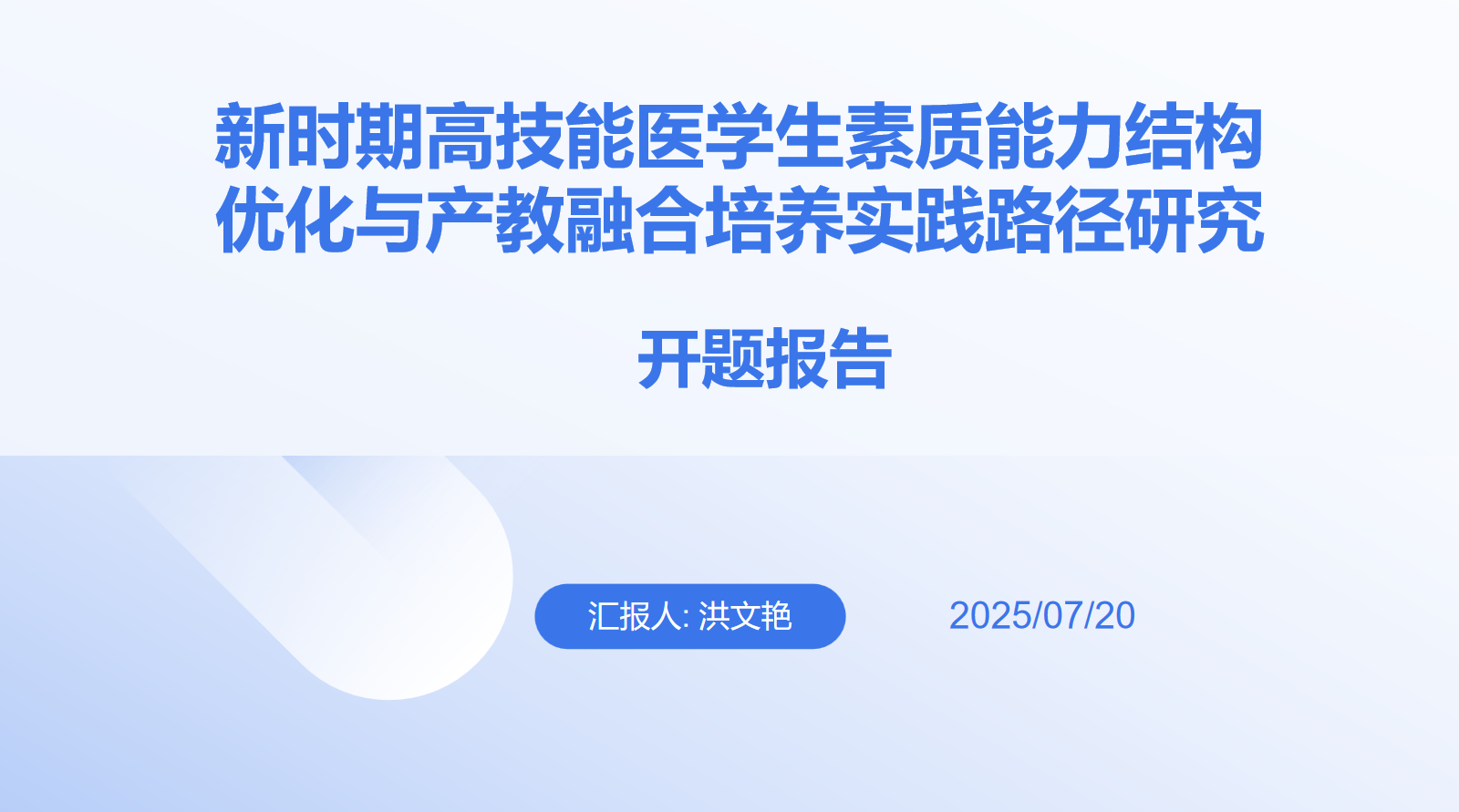 2025年7月20日,健康医学院在腾讯会议线上召开了“新时期高技能医学生素质能力结构优化与产教融合培养实践路径研究”项目开题报告会。本次会议邀请了屠美教授、任旷教授、杨凤琼教授三位专家担任评审,项目负责人洪文艳教授及项目组成员共同参与,会议取得圆满成功。