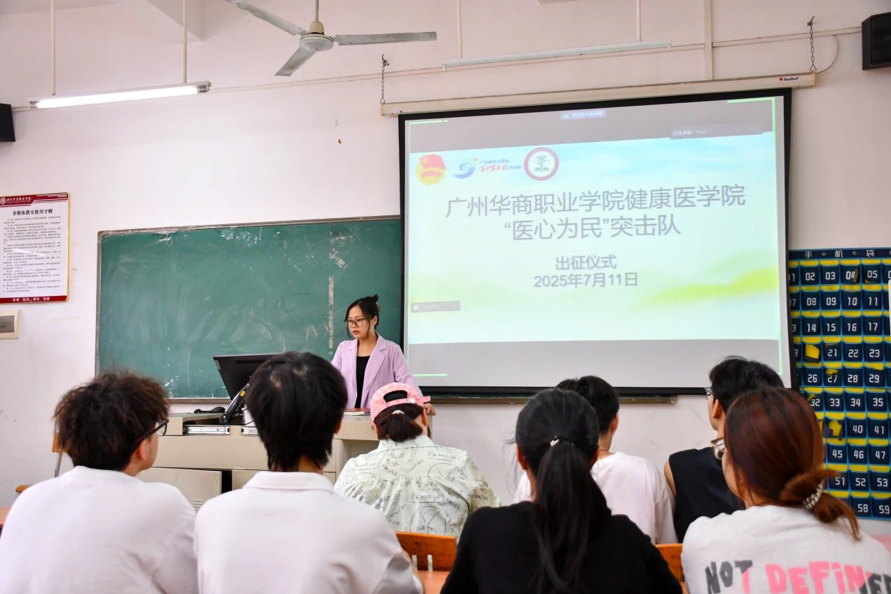 7月11日,广州华商职业学院“医心为民”突击队举行出征仪式。指导老师赵巧鸿、李倩及突击队17名队员共同参加。本次出征仪式由队长温家轩主持,标志着新一年暑期社会实践活动的正式启动。