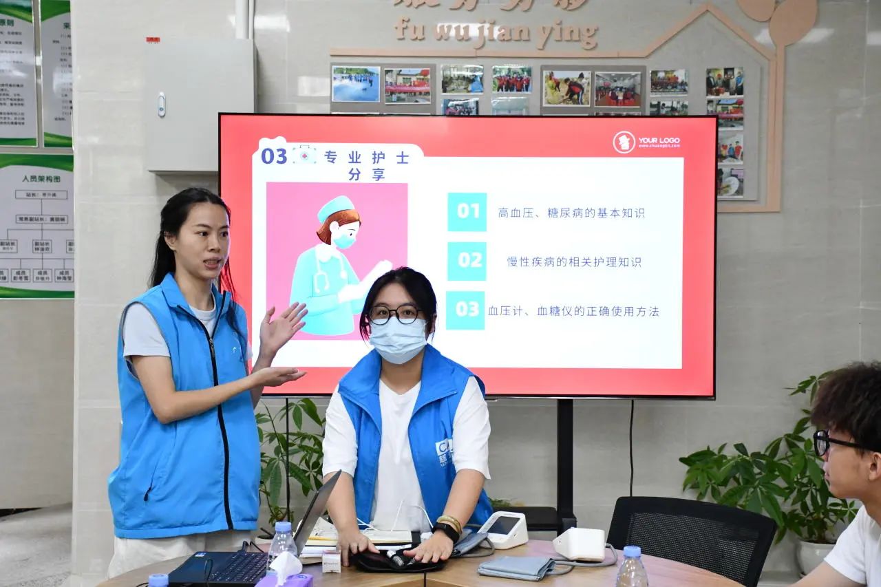 7月15日,培训转向“慢性病知识,专业储备”主题,特邀专业护理员采用“理论+实践”模式授课。课程围绕血压计、血糖仪规范使用展开: