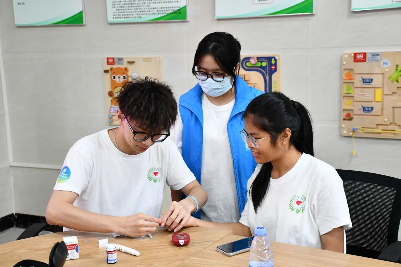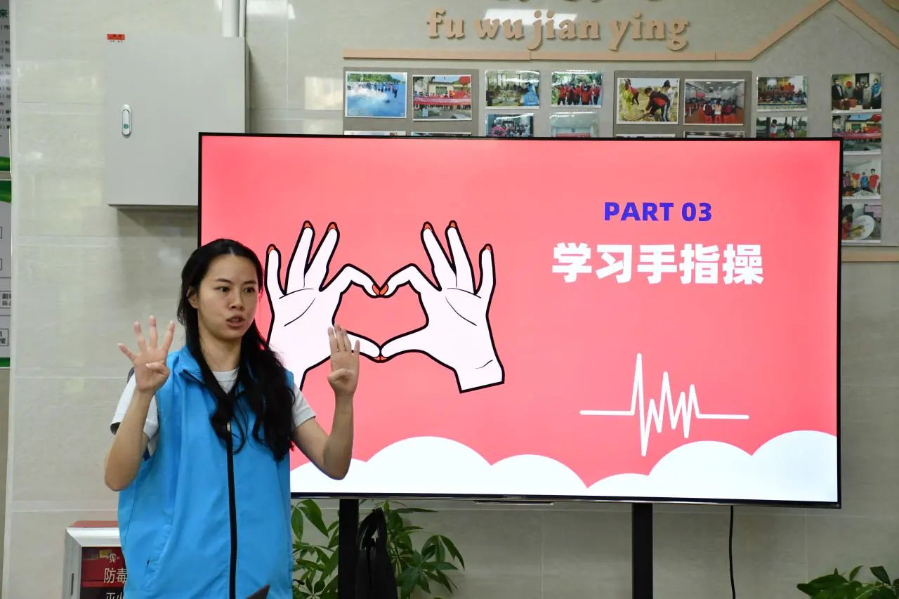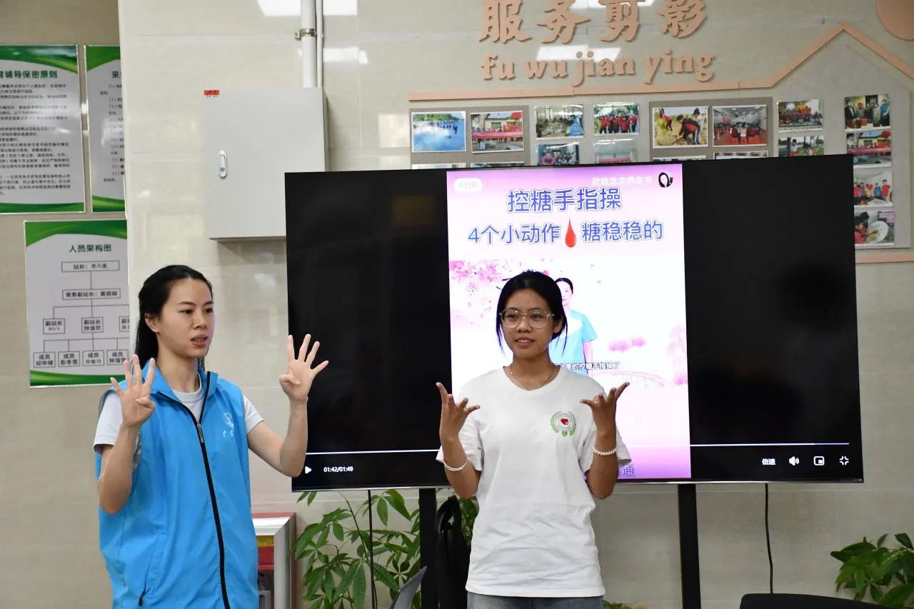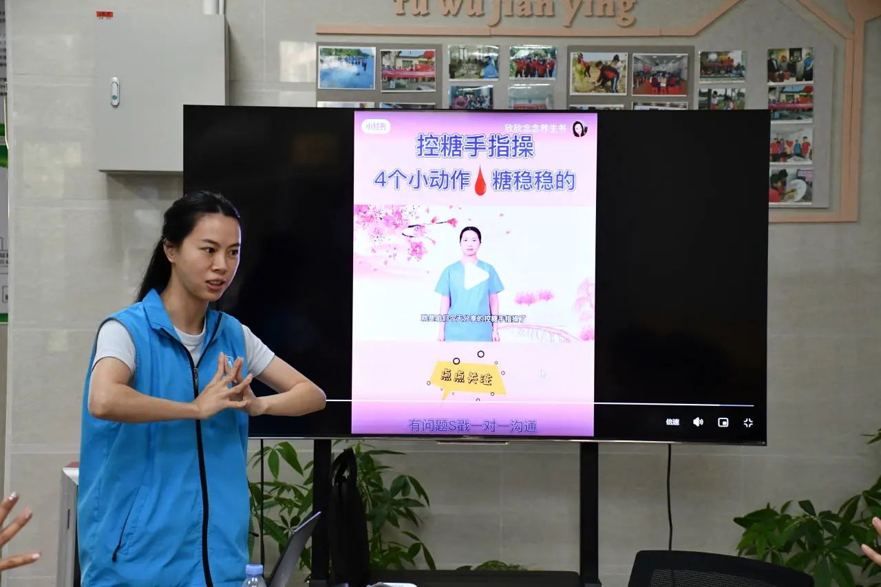 现场互动技巧:队员通过学习降血糖“手指操”,知道活动手部关节和肌肉,能够促进血液循环,间接辅助血糖调节。