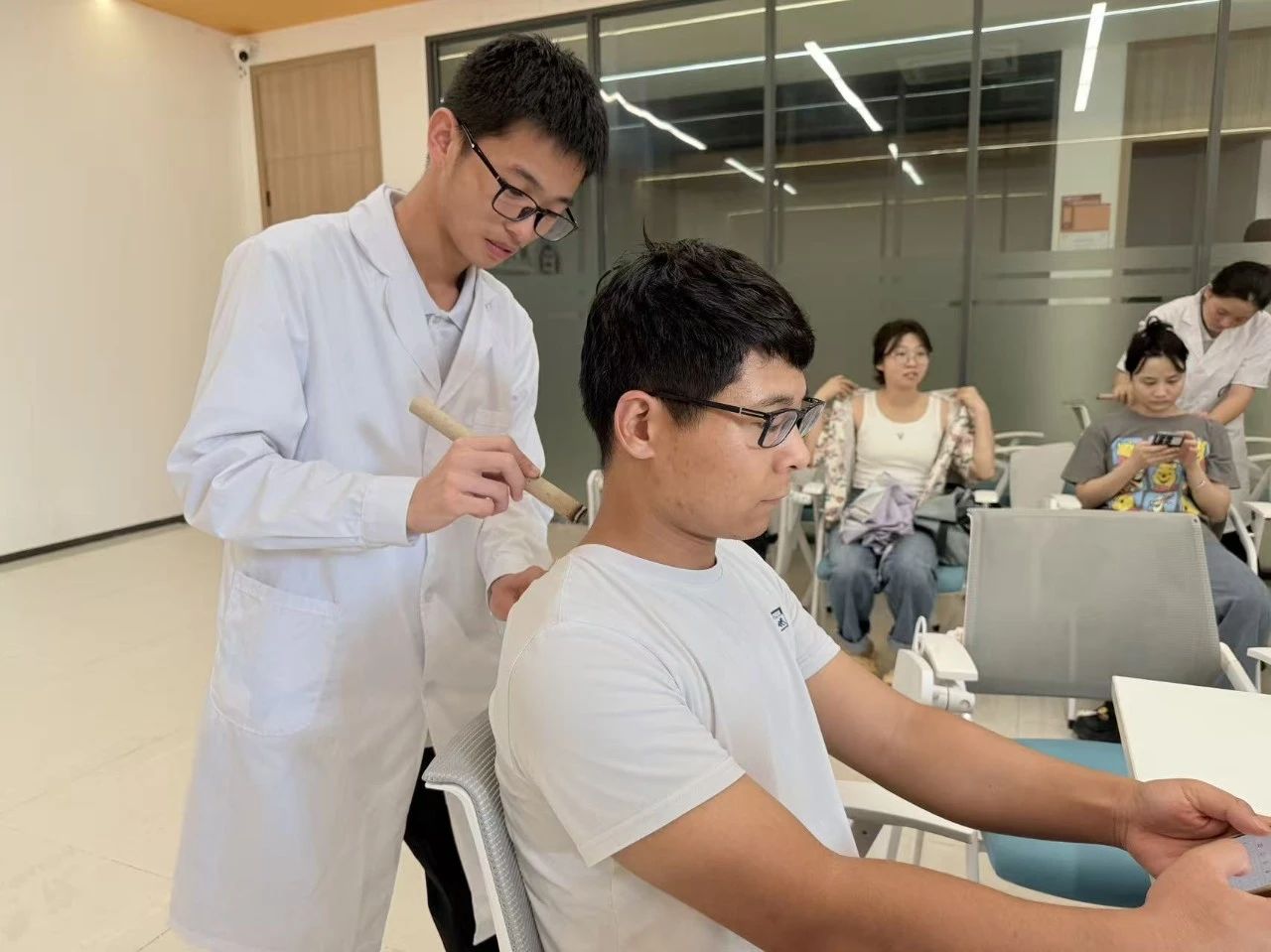痧痕渐显又慢慢淡去,留下的是疏通后的轻快。这场实操,不仅是技能的历练,更让成员们在“刮去淤堵,留下舒适”的实践里,读懂了“以术护康”的深层意义——只为下次服务时,能让更多老人真切感受“痧退身轻”的自在。