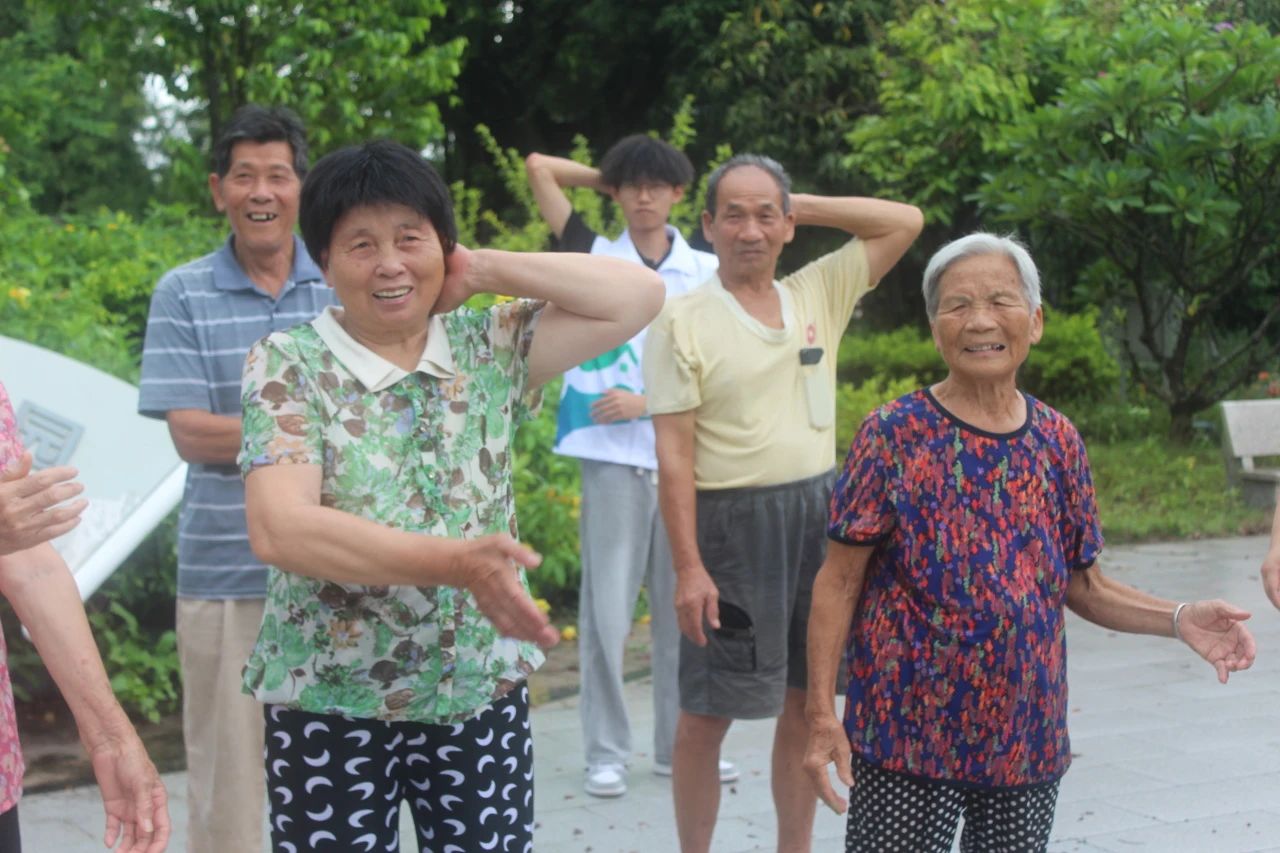 考虑到村中长者的年龄和身体状况,队员们精心挑选了一套动作简单舒缓、蕴含中医智慧的养生操,其中特别融入了传统养生法“拍八虚”。
