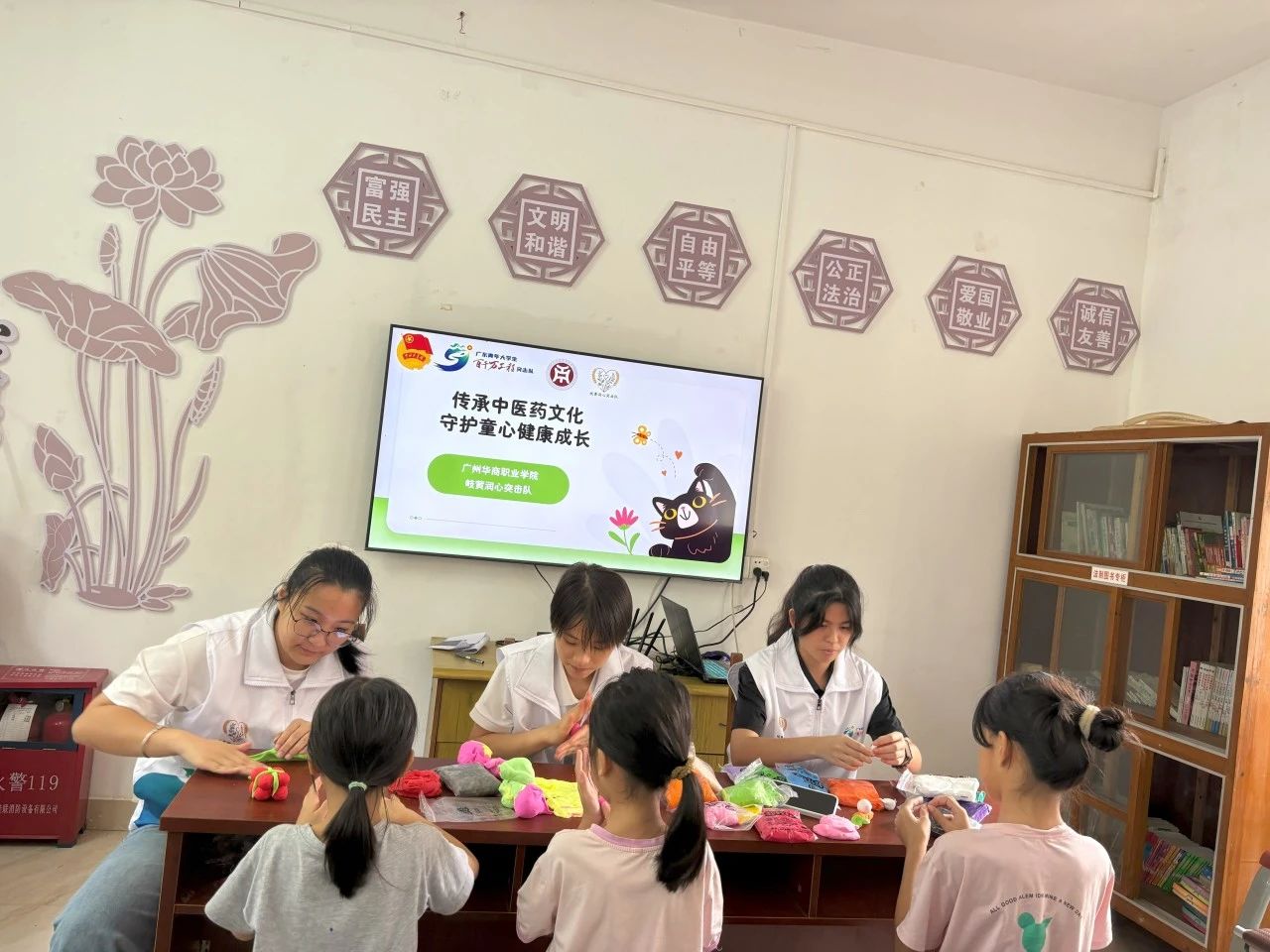 如何让中草药知识在孩子心中扎根发芽?队员们巧妙地将传统智慧与创意手工结合!引导小朋友们用五彩黏土,捏塑出他们认识的中草药。