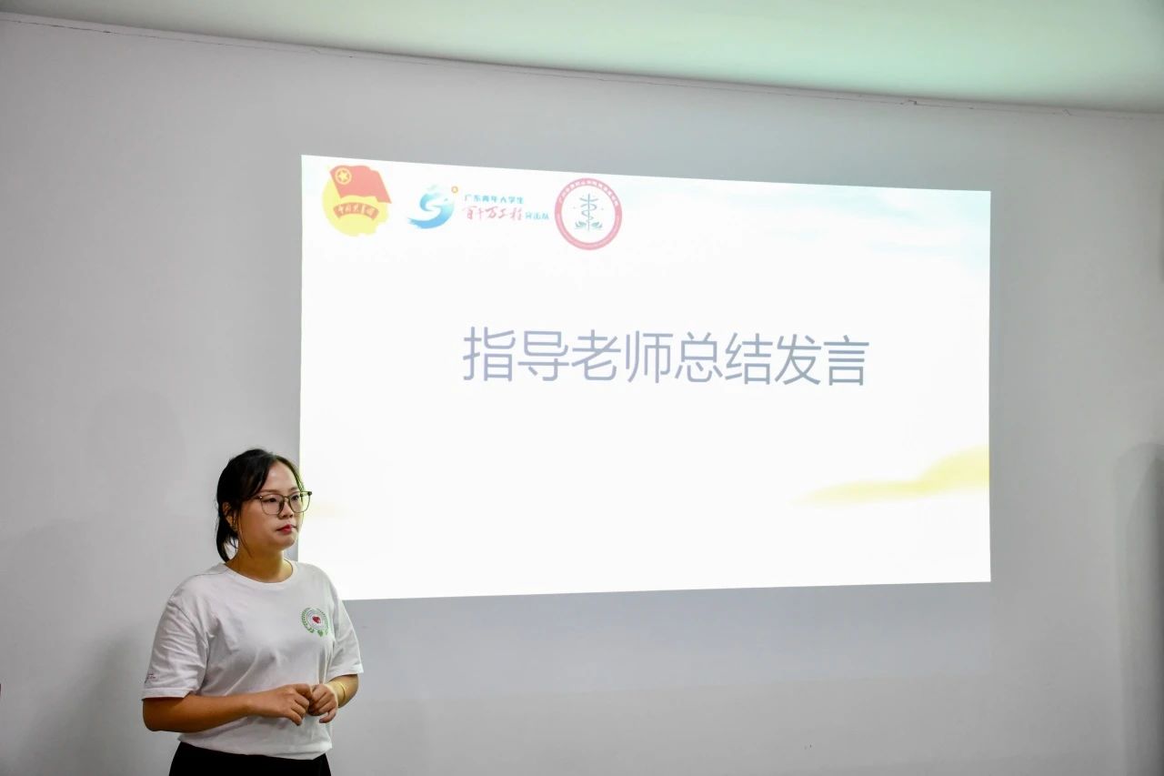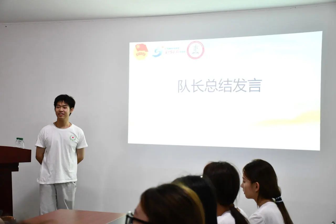 首先,由带队队长温家轩做总体工作汇报,全面总结实践期间队伍在医疗服务、健康宣教、学业辅导等方面的工作成效。他最后总结道:这次三下乡我们守护的不仅是青少年的心灵,更是责任。希望接下来我们能以此为使命,以爱为光,照亮青少年成长之路,共筑青少年健康未来!