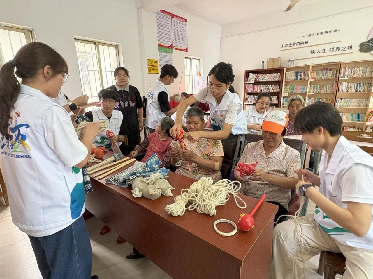 “原来这么简单又有趣!” 村民们跃跃欲试,纷纷动手。卷艾草、裹棉布、系紧绳、固定木棒……邻里间互相帮忙,交流心得,现场笑语盈盈,其乐融融。她们看着手中逐渐成形的、敦实可爱的艾草锤,成就感油然而生。