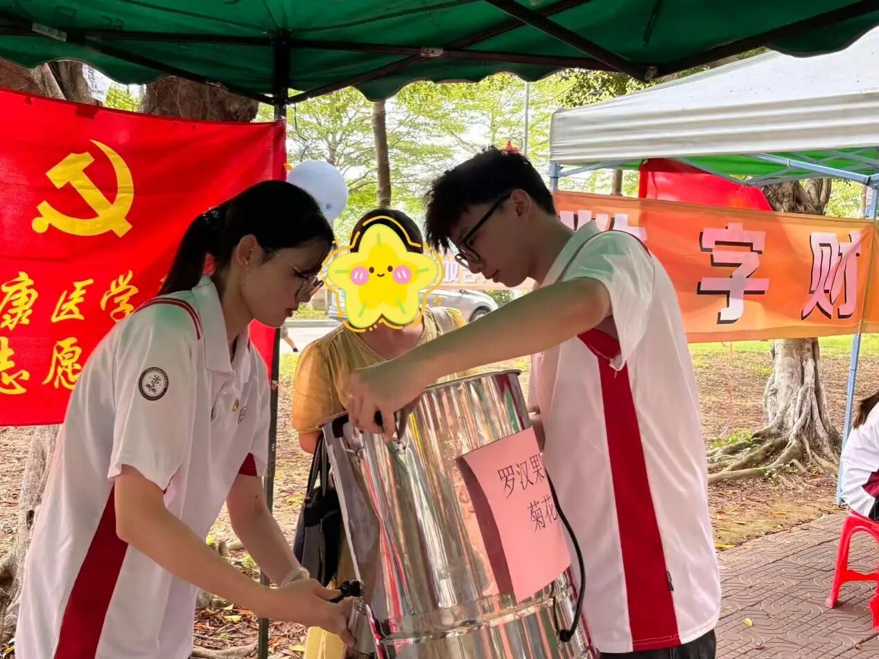 金秋八月,校园迎新季如约而至。为了让初入校园的新生感受关怀与温暖,我院医心健康服务队和学生第一、第二党支部学生党员精心打造了“党员花茶岗”,将服务初心融入一杯杯花茶,成为迎新现场温暖的风景线。