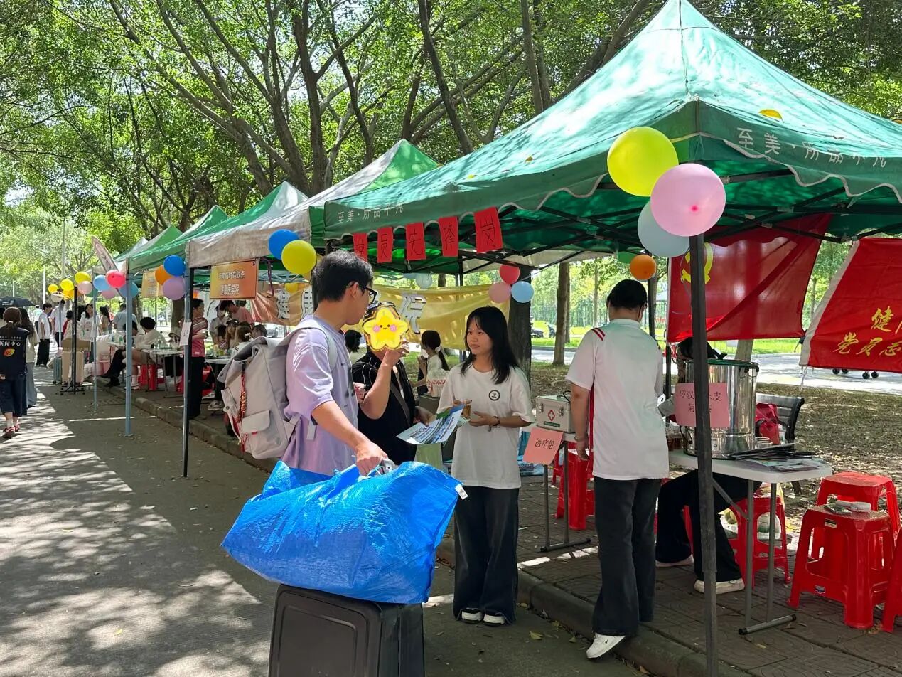 除了提供花茶,党员花茶岗还是“一站式服务站”。面对新生对校园路线、报到流程、宿舍分配的疑问,志愿者们耐心解答,还主动帮忙搬运行李,引导新生前往各个报到点。