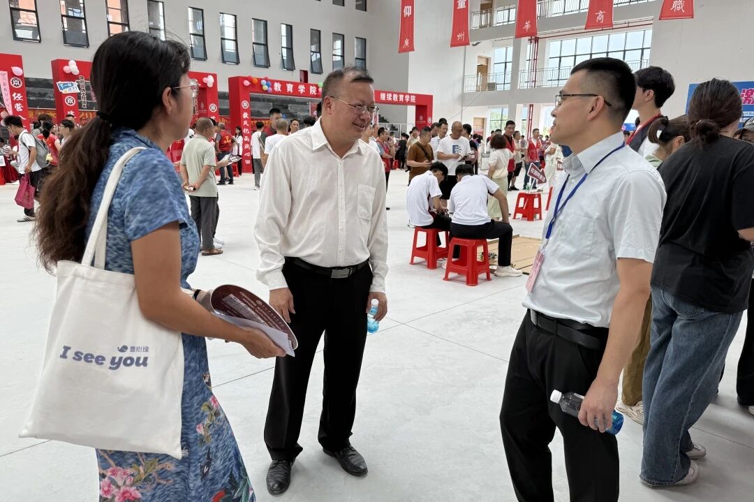 学校党委书记翁礼成亲临健康医学院迎新接待点,视察并指导迎新工作,亲切慰问2025级新生和现场工作人员。健康医学院院长洪文艳、学生工作副院长黄泽栋陪同接待,并汇报了工作情况。
