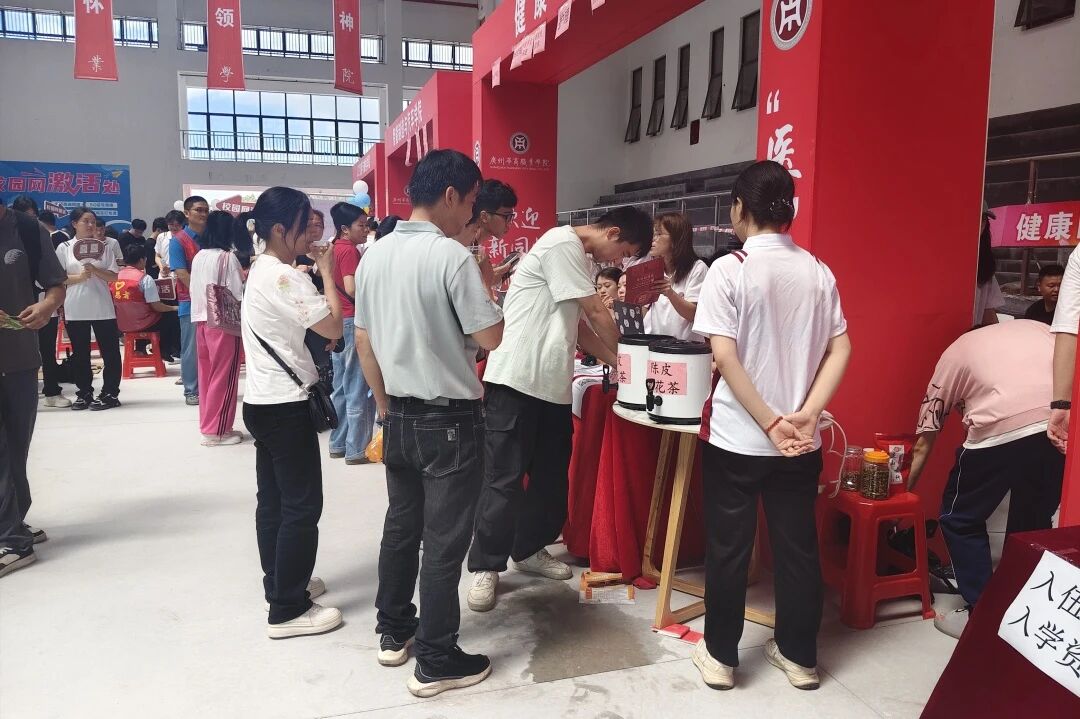 报到现场一片热闹景象,一张张青春洋溢的脸庞在校园各处闪现,新生们怀揣着憧憬踏上了新的征程。健康医学院特意为新生和家长准备了具有清热解暑功效的陈皮菊花茶等特色茶饮。这款茶饮不仅能在炎热的天气里带来丝丝清凉,还蕴含着健康理念,体现出学院对新生和家长无微不至的关怀,为迎新活动增添了一抹温馨的色彩。