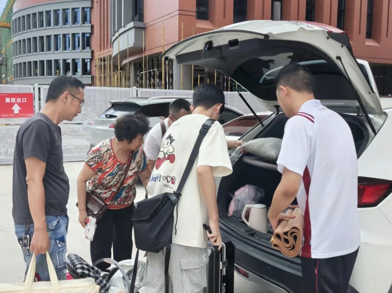 校门口川流不息的车辆和熙熙攘攘的人群,共同交织成开学季里一道最为动人的风景线。学生们或是家长们提着行李、拿着资料,还忍不住拿出手机,记录下踏入大学校园这一珍贵时刻。