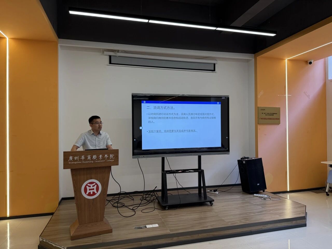 随后,辅导员代表孔德真老师上台分享如何高效、规范地对发热学生开展流调。他通过情景再现的方式,演示了如何安抚学生情绪、引导其准确回忆行程、交叉验证信息,并完整填写流调报告。他的分享生动具体,为全体学工人员提供了极具参考价值的实操范本。