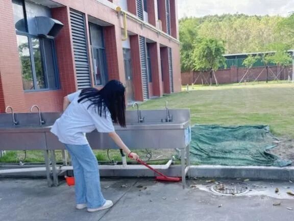 将近一周的时间里,志愿者们携带清扫工具分组行动。在绿化带、排水沟、洗手池旁,大家仔细清理积水洼地,从源头切断蚊虫滋生途径;清扫堆积垃圾、卫生死角,消除病媒生物藏匿空间;针对食堂周边、垃圾投放点等重点区域,协助设置防蝇笼、灭鼠盒,强化“四防”措施落地;提醒师生自主喷涂驱蚊水。