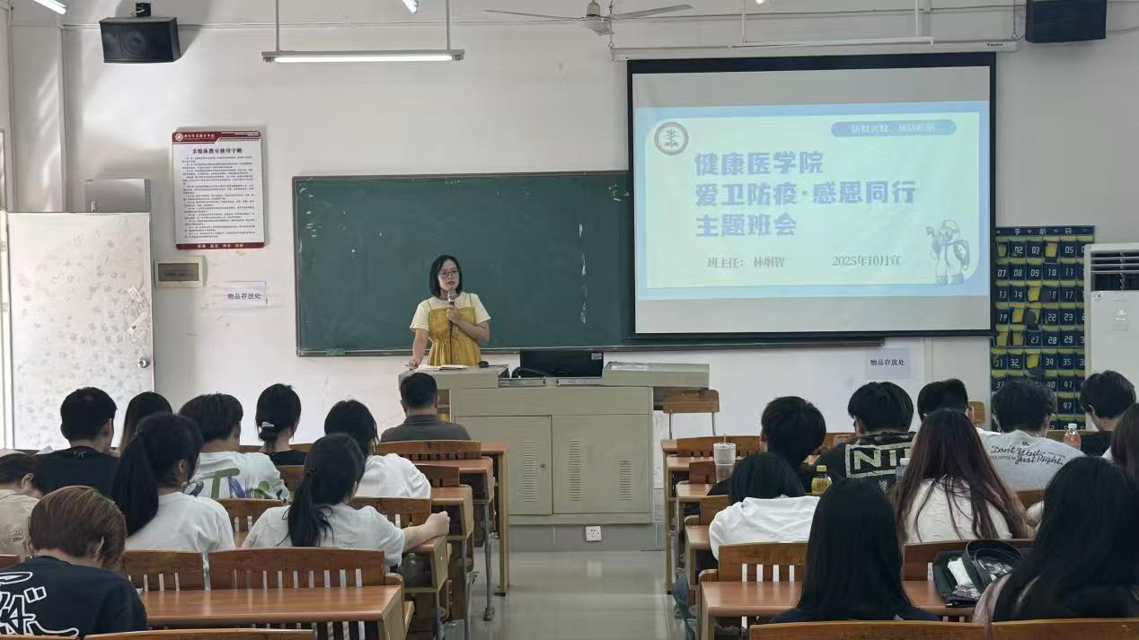 为全面提升学生健康素养,强化传染病防控意识,普及医疗保障政策,并引导学生树立感恩之心与责任担当,近日,健康医学院在广州校区与江门校区同步组织各班级开展了十月主题班会,围绕“防蚊灭蚊、预防基孔肯雅热”“城乡居民医疗保险政策解读”与“心怀感恩、砺行致远”三大主题,进行了一场内容扎实、形式多样的综合教育。