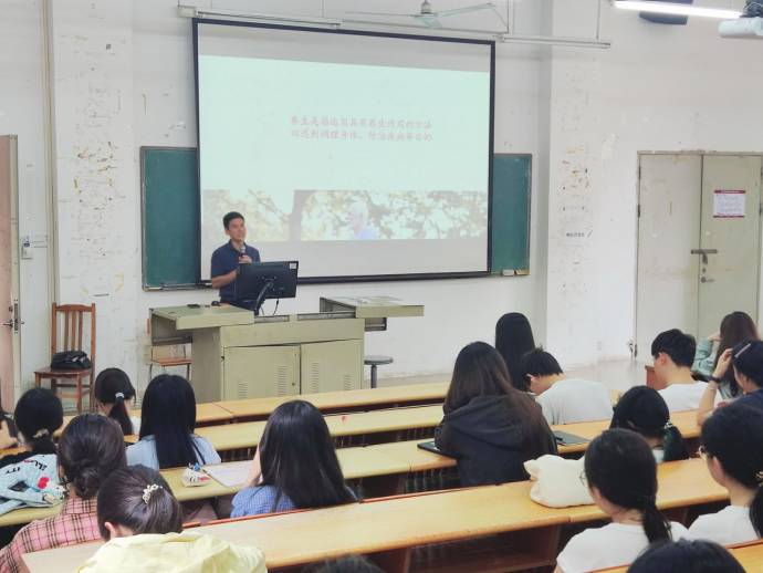 随后杨滔老师清晰解读“养生是运用具有养生作用的方法,以达到调理身体、防治疾病等目的”这一概念,引导同学们理解养生不仅是一种理念,更是可实践、可落地的健康行动,助力大家在“养生有道”的探索中,真正实现“健康随行”。