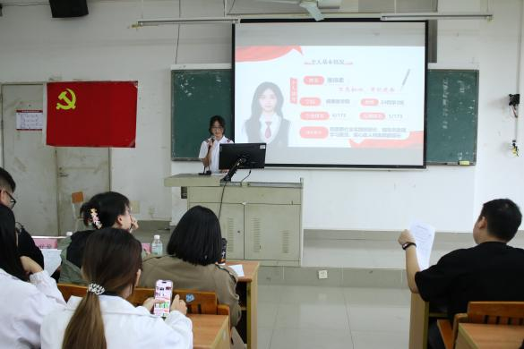 首先,健康医学院组织员王宏越老师介绍本次自荐会报名人数、筛选标准和自荐要求,鼓励自荐同学端正态度,把握机会,积极展现政治素养与综合能力。