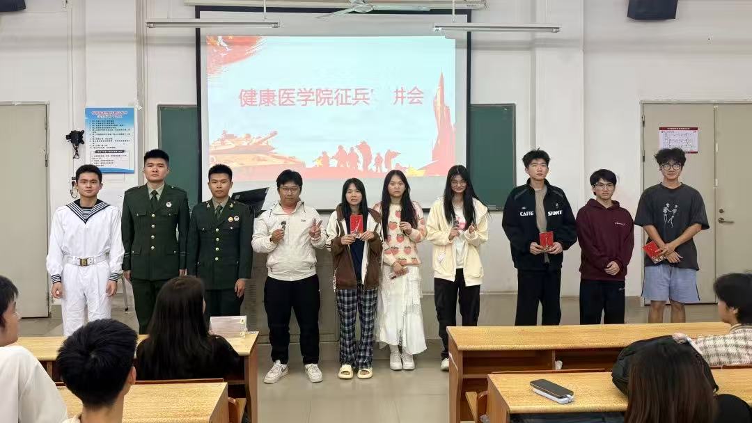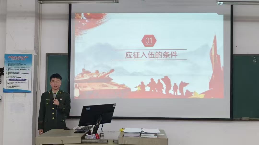 为积极响应党和国家征兵工作的号召,引导青年学生踊跃参军、帮助大学生深入了解参军入伍政策,激发爱国主义情感。健康医学院国防教育宣讲团10月23日在博B501开展了主题为“青春逐理想,参军砺锋芒"的线下征兵动员宣讲会暨现场答疑活动。本次活动由健康医学院国防教育宣讲团温瑞松主持。出席本次活动的有健康医学院国防宣讲团指导老师杨敏娟老师。