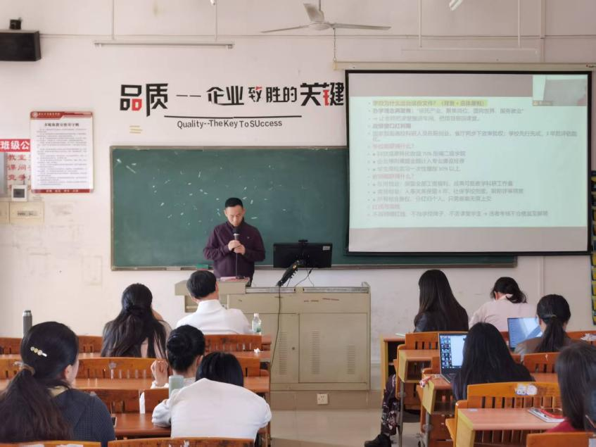 为增强考核方案的可操作性,教学副院长任旷与学工副院长李倩分别就分管领域考核细则进行解读。副院长任旷围绕《专任教师绩效考核方案》,从教学工作量、科研水平、教学质量等方面明确了考核指标与评价标准;副院长李倩系统阐述了辅导员考核方案,聚焦学生思想政治教育、日常管理、学风建设等要点,说明考核内容与评价方式。