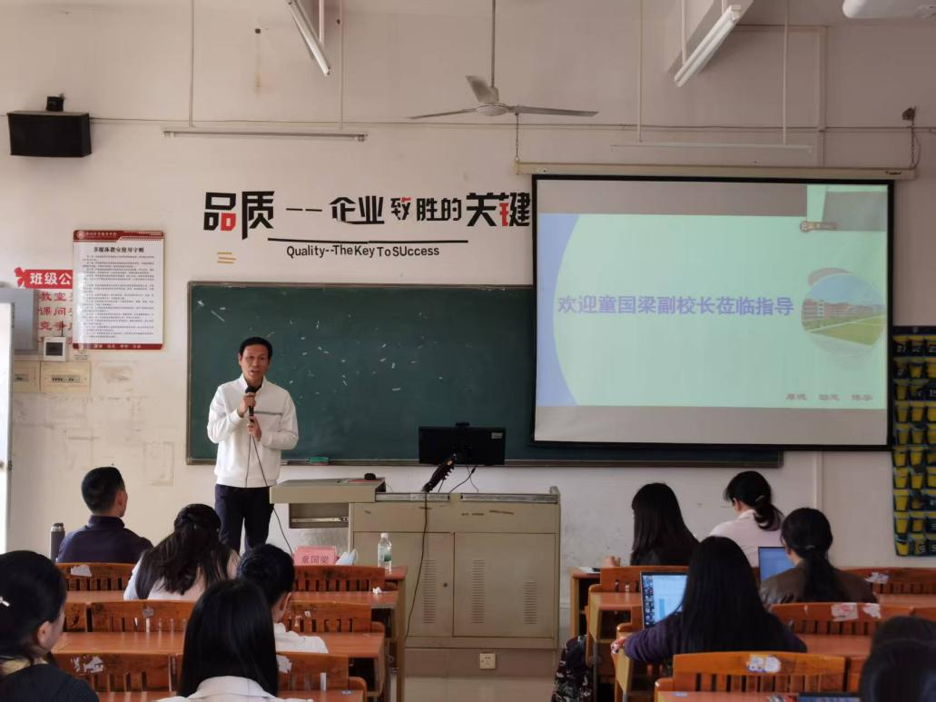 为规范学院管理,优化绩效考核体系,明确发展路径,2025年12月3日,我院在广州校区博B505与江门校区在文401-2线上同步召开全体教职工会议。学校副校长童国梁到会指导,学院院长洪文艳、教学副院长任旷、学工副院长李倩、党政办公室主任戴乐毅及全体教职工参会。会议由党政办公室主任戴乐毅主持。