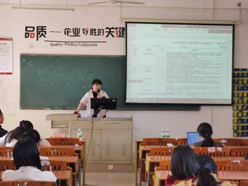 紧接着,院长洪文艳重点解读了《广州华商职业学院教职工在岗离岗创业管理办法(试行)》。她结合文件条款与学院实际,围绕政策适用范围、申请条件、流程及相关待遇等内容展开阐述,为有创业意愿的教职工提供明确指引,鼓励大家在做好本职工作的同时,积极探索教学、科研与社会服务融合的新路径。