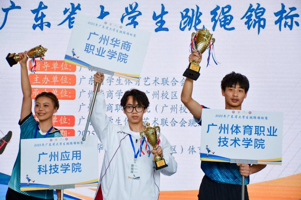12 月 6 日至 7 日,由广东省教育厅指导、广东省学生体育艺术联合会主办、广州华商职业学院承办的广东省大学生跳绳锦标赛,于本校体育中心顺利举办。在此次大赛中,本校荣获11 金 5 银 9 铜的优异成绩,其中医学技术学院学子为校夺得6金1银!
