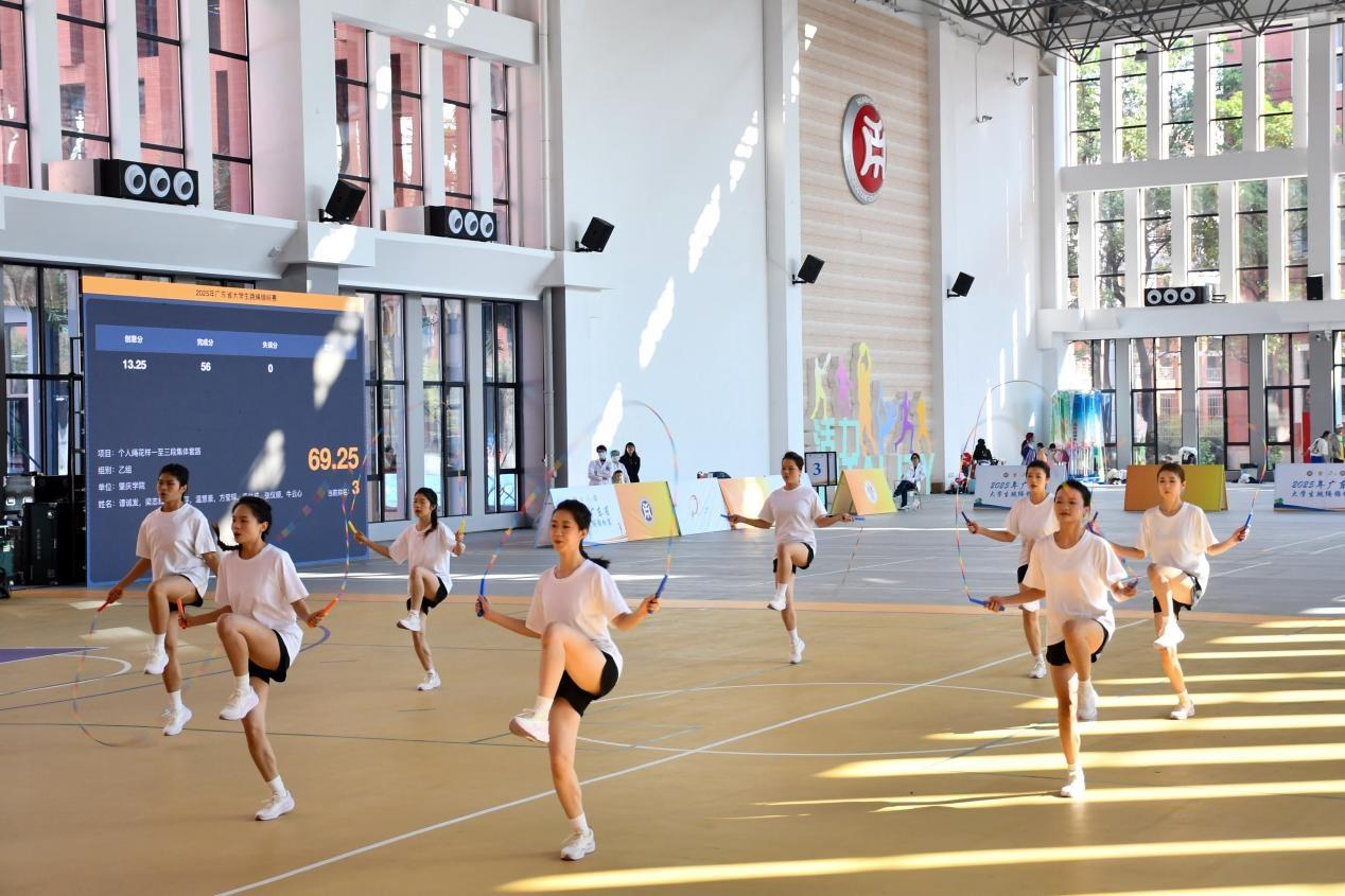 在首日激烈的竞赛之后,赛事于12月7日迎来了收官之日。在个人绳花样一至三段集体套路项目中,我校代表队勇夺桂冠。该参赛队伍由8人组成,其中6人来自医学技术学院。