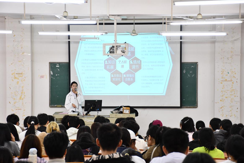 讲座伊始,青年志愿者协会的负责人莫嘉淇通过互动和图文并茂的PPT,向同学们讲解志愿者基本理念与起源、志愿者的价值、志愿者应具备的素质、志愿者服务的注意事项、志愿者的激励与保障,鼓励大家积极参与志愿服务。