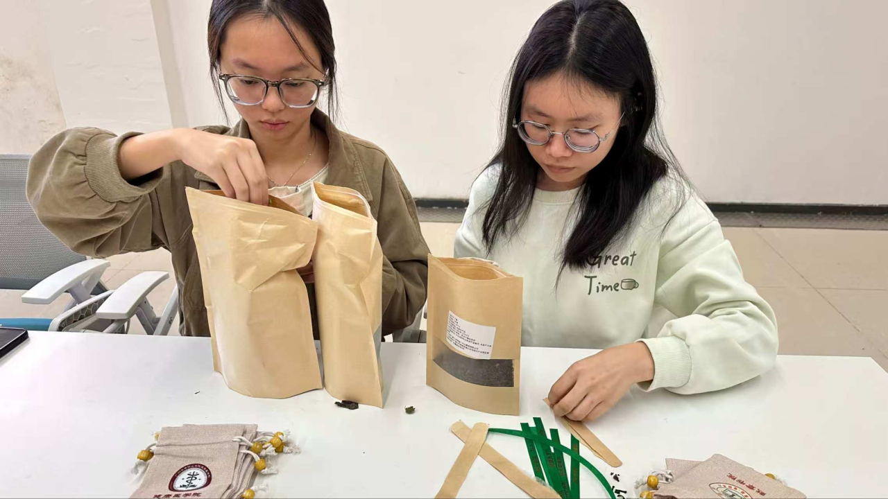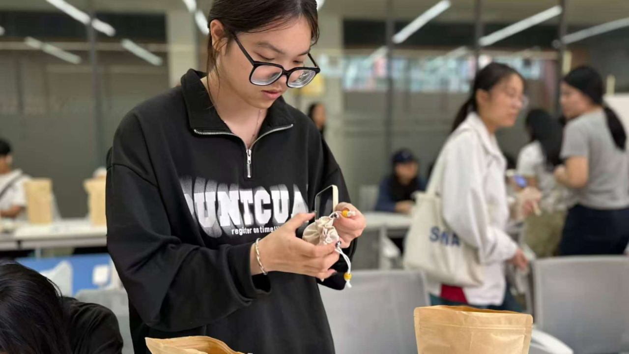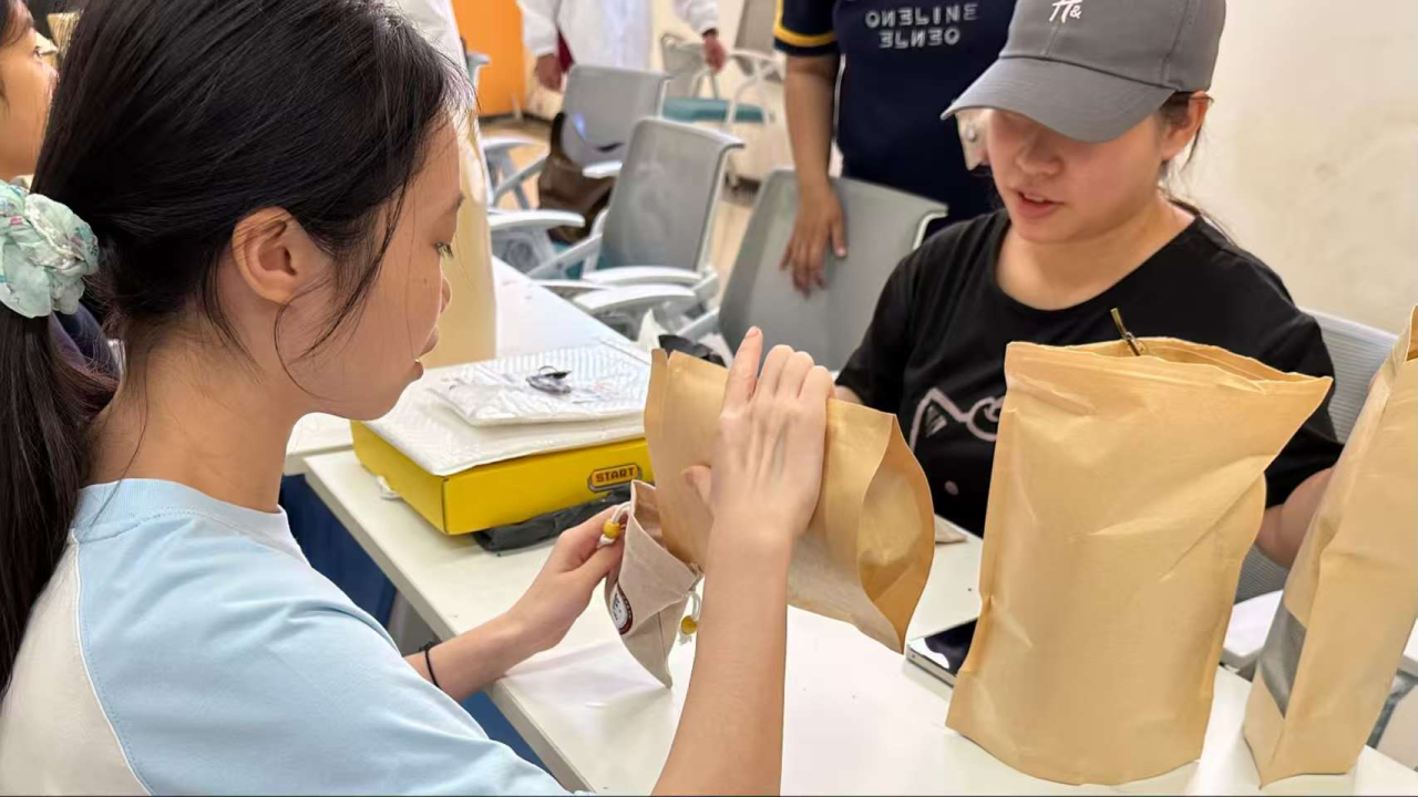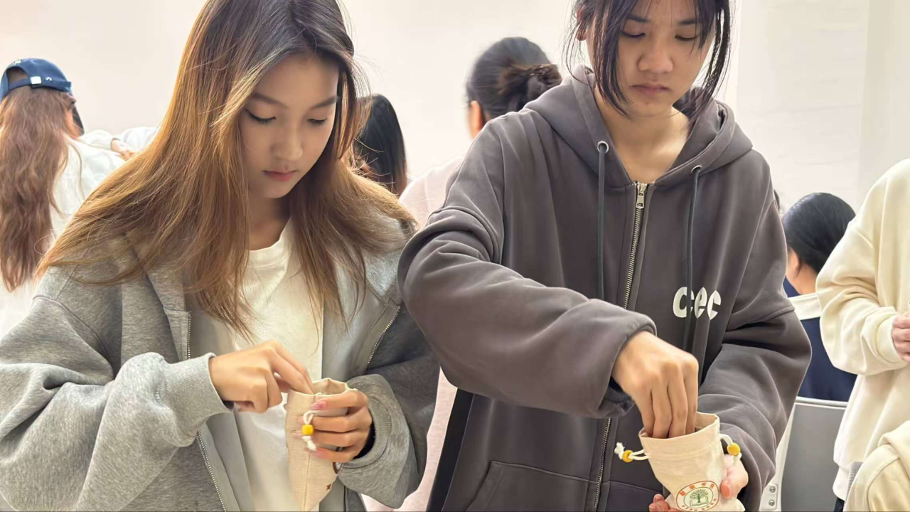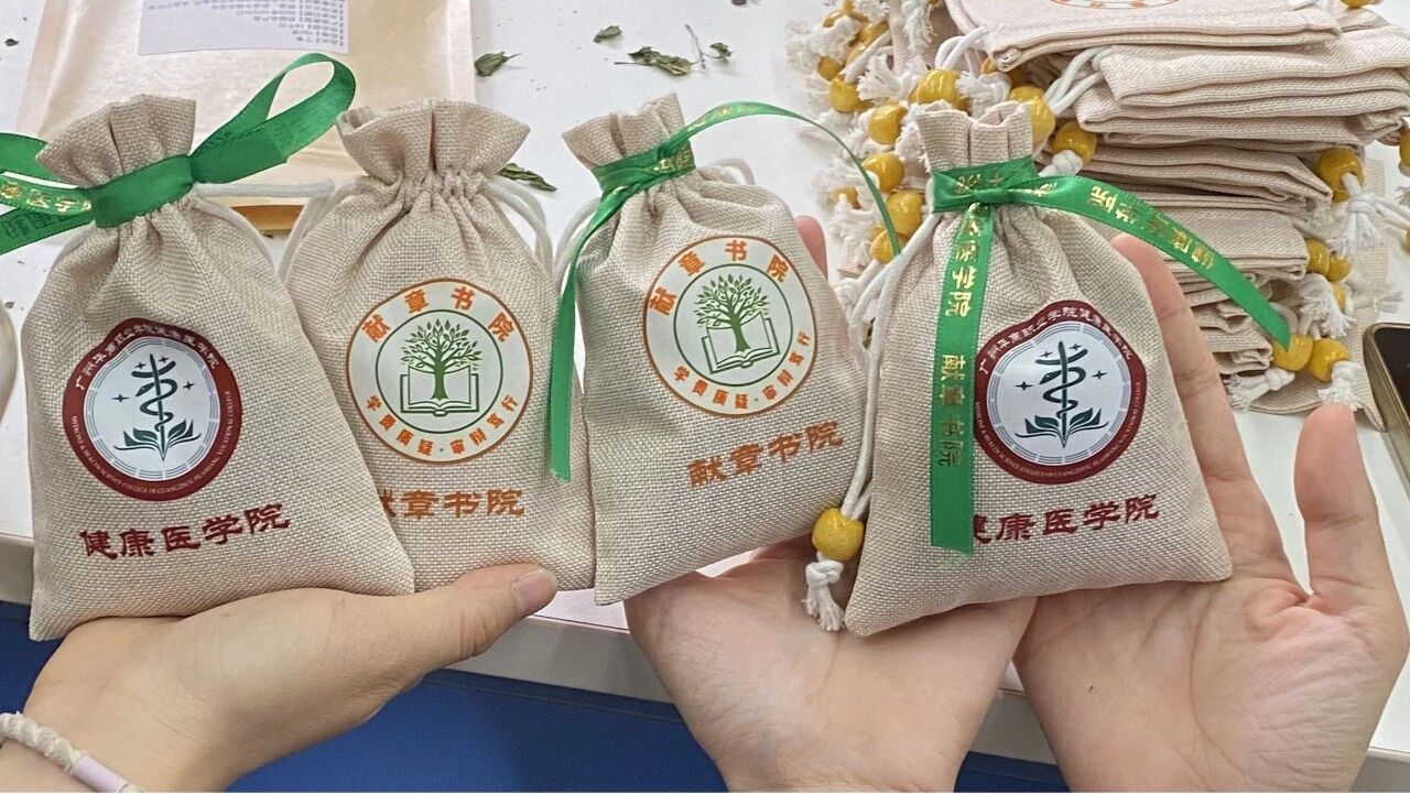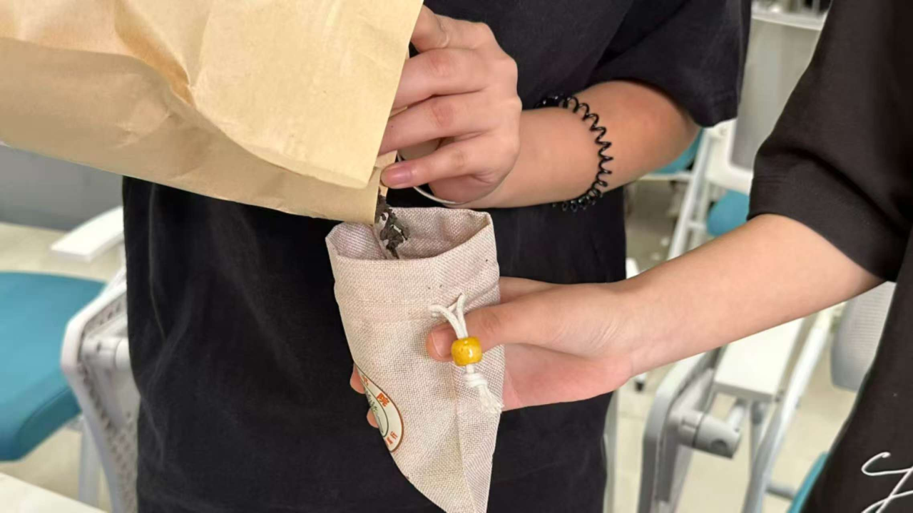 防蚊香囊的核心在于天然草药。活动中,同学们学习辨识各类药材,并亲手将陈皮、薄荷、丁香等草药依据个人喜好进行搭配,既实现了驱蚊防虫的功效,又兼顾了清新怡人的香气。